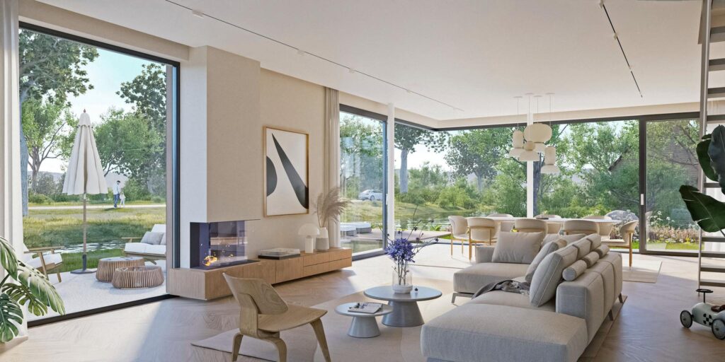 Aan de Ditlaar in Amsterdam Zuid West, worden vier luxe villa’s gebouwd in een kwadrant, omringd door water. Iedere villa wordt circa 245 m² groot kent dezelfde indeling. Op de begane grond leef je binnen en buiten, door de grote puien die open geschoven kunnen worden. De grote living om te ontspannen grenst aan de eetruimte. In een aparte ruimte op de begane grond kan worden gewerkt of kan dienen als speelkamer. Op de eerste etage worden vier slaapkamers en twee badkamers gerealiseerd. Schrijf je in voor de nieuwsbrief, dan informeren we je als we de website hebben uitgebreid met informatie.