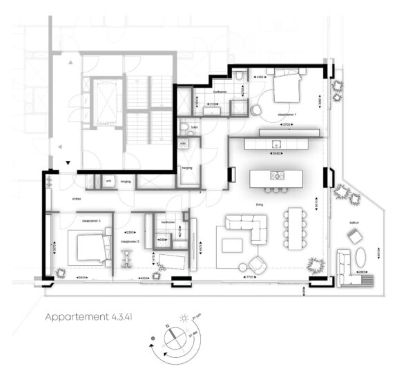 Blanc is een kleinschalig gebouw met 18 appartementen, twee of drie per verdieping. De grote balkons, waar je heerlijk kunt loungen en buiten eten, geven het gebouw een mooi lijnenspel. De balkons lopen door als een lijst langs alle gevels. Dat betekent dat je in vrijwel iedere kamer de schuifpuien open kunt zetten voor een echt buitengevoel. De indeling van de appartementen kan in overleg nog naar wens worden aangepast. Binnenkort start de bouw van Kaap, naar verwachting zijn de appartementen eind 2024 klaar.