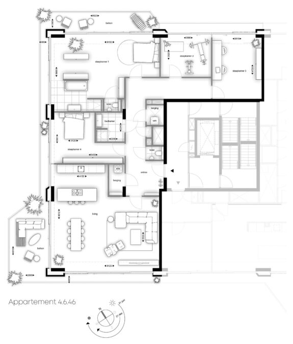 Blanc is een kleinschalig gebouw met 18 appartementen, twee of drie per verdieping. De grote balkons, waar je heerlijk kunt loungen en buiten eten, geven het gebouw een mooi lijnenspel. De balkons lopen door als een lijst langs alle gevels. Dat betekent dat je in vrijwel iedere kamer de schuifpuien open kunt zetten voor een echt buitengevoel. De indeling van de appartementen kan in overleg nog naar wens worden aangepast. Binnenkort start de bouw van Kaap, naar verwachting zijn de appartementen eind 2024 klaar.