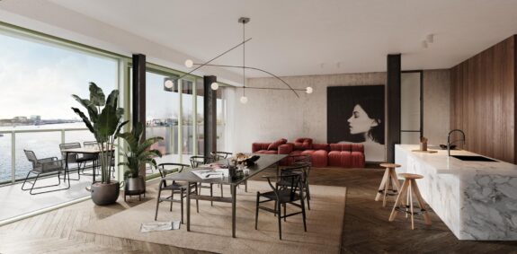 Powerhouse Company heeft Coast ontworpen. De geveldetails van Coast in zwart aluminium wisselen mooi af met de grote raampartijen. De uitzichtpanorama’s zijn hier straks ongekend. “Aan de straatkant is het gebouw vooral gericht op privacy en aan de IJ-zijde staat het gebouw als het ware open”, Paul Stavert, architect Powerhouse Company.