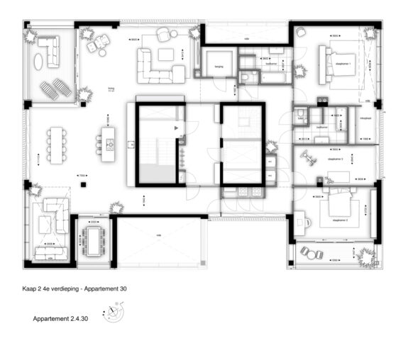 De inrichting van de keuken en badkamers is inbegrepen bij de koopsom. Een casco-oplevering behoort ook tot de mogelijkheden.