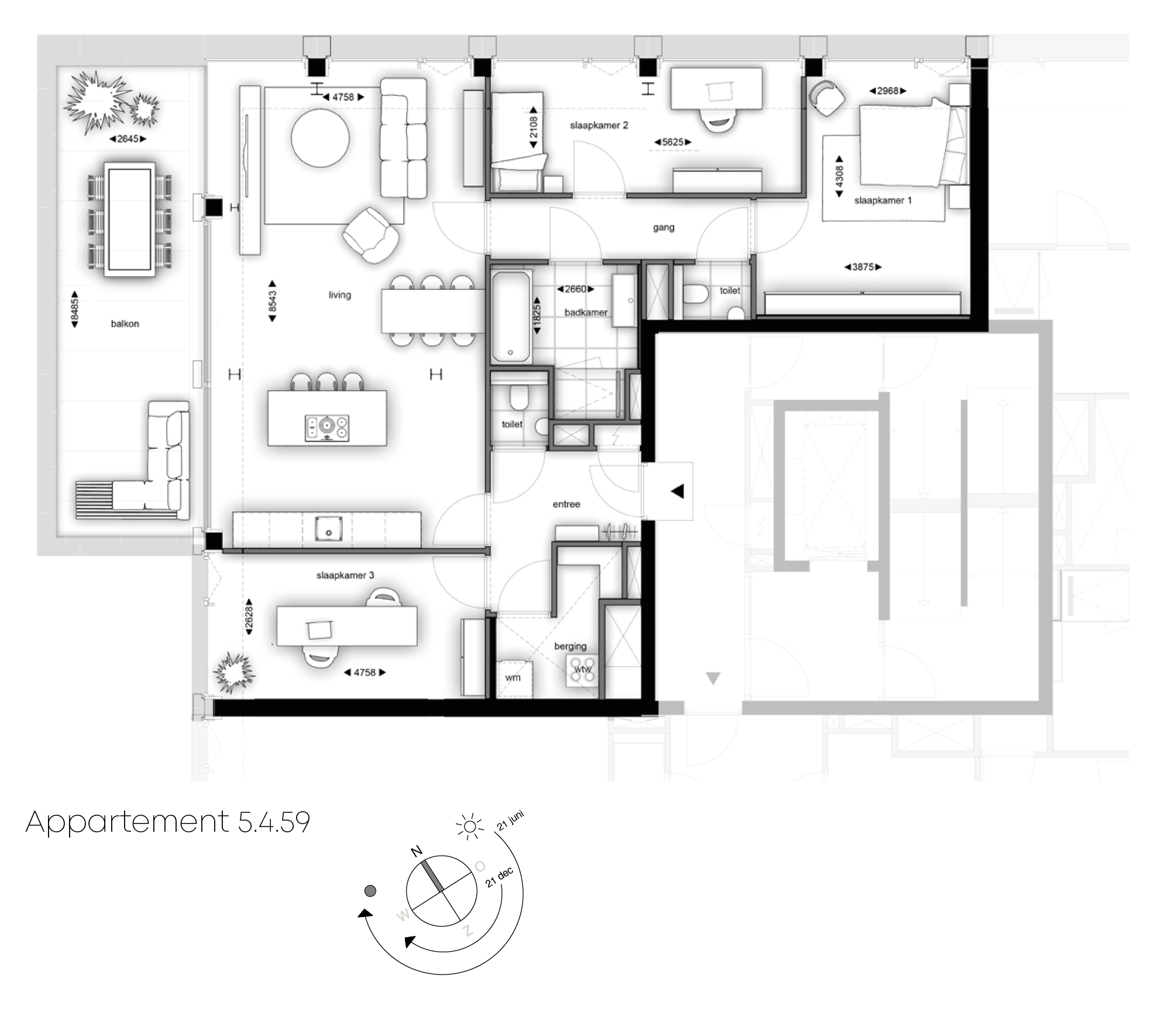 Op de vierde verdieping van Verde komt appartement 5.4.59 met ca. 117 m2 woonoppervlakte. De living is licht en ruim met grote raampartijen en een zichtlijn naar het IJ.  Het terras op het westen (oppervlakte ca. 21 m2) heeft een lengte van bijna 8,5 meter. De woning heeft 3 slaapkamers en een ruime badkamer.  De indeling van het appartement kan in overleg naar uw wensen worden aangepast.