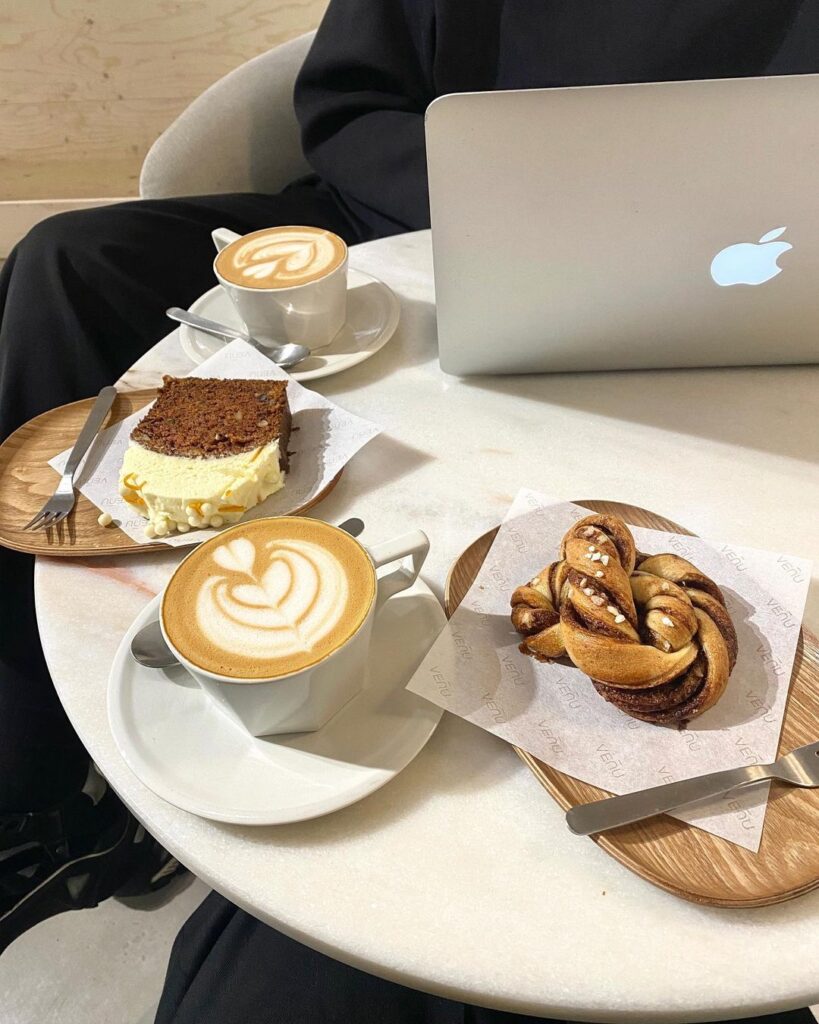 Venu is in de eerste plaats een moderne co-workingruimte die werkt op afspraak of via een maandelijks lidmaatschap, zodat je altijd verzekerd bent van een plek. Het is prachtig ingericht met een strak, minimalistisch interieur.  Bovenin is het café, waar ze naast heerlijke koffie ook iced matcha lattes en een verfrissende milky oolong iced tea serveren. Ze hebben ook altijd zoete lekkernijen in de aanbieding.