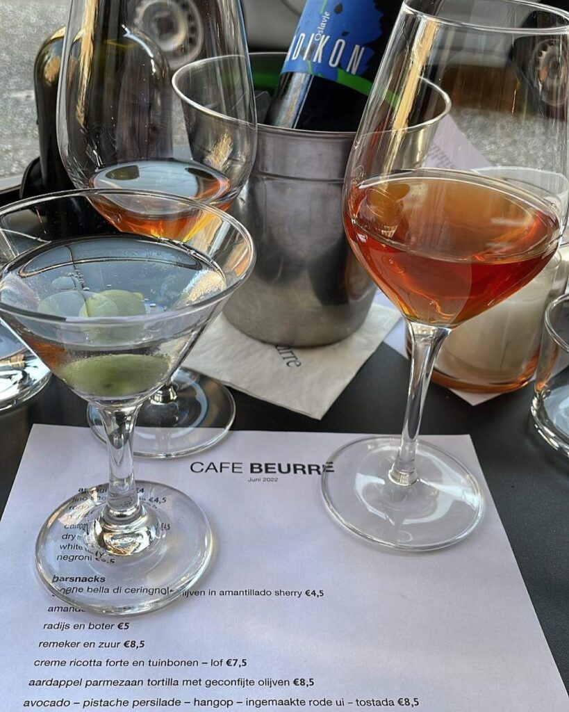 Café Beurre is een laagdrempelige plek waar je zonder reservering altijd welkom bent. Het restaurant heeft een voorliefde voor groenten en boter, en gebruikt geen vlees of vis in hun gerechten. De wijnkaart is samengesteld door voormalig medewerker van Balthazar's Keuken en De Wijnwinkel, en biedt een selectie van Franse en Italiaanse wijnen tegen fatsoenlijke prijzen. Het restaurant heeft ook veel aandacht voor aperitieven en serveert een klassiek Frans hapje van radijs met zelfgemaakte boter van biologische boerderij De Beekhoeve. De menukaart wisselt regelmatig en biedt gul smakende, ongecompliceerde gerechten die uit de losse pols lijken te zijn ontstaan.