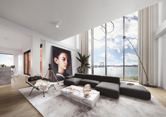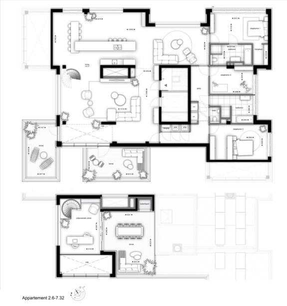 Ca. 227 m2 wonen op de zesde en zevende verdieping. Een spectaculair penthouse met een dakterras (ca 29 m2) en een dakstudio van ca. 20 m2. De woning heeft spectaculaire zichtlijnen over het IJ en het Tolhuiskanaal. Het penthouse heeft drie slaapkamers en twee badkamers.