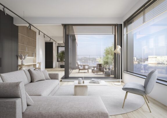 Het penthouse van York op de vierde verdieping is de kroon op het gebouw. Het dakterras op de vijfde verdieping biedt schitterend uitzicht over het IJ. De woning heeft in totaal circa 49 m2 buitenruimte. Dit appartement is een van de vijf bijzondere woningen in gebouw York in het project Kaap. Kaap is een ensemble van vijf kleinschalige gebouwen die gebouwd worden aan de Grasweg in Amsterdam Noord. Een rustige plek in de luwte van de stad, pal aan het water.