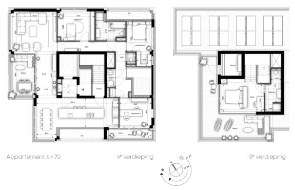 De lift geeft direct toegang tot de entreehal van het appartement. Aan de living grenst een balkon op het westen met prachtig uitzicht. De ultieme plek om te genieten van de mooie luchten bij zonsondergang in de zomer. Voor het appartement is een keuken ontworpen door Piet Boon Kitchen, met apparatuur van Gaggenau, Bora en Quooker. De keuken kan nog geheel naar eigen wens worden vormgegeven. Het appartement biedt ruimte aan drie slaapkamers, de dakstudio is ook in te richten als bijzondere extra slaap met een privé-badkamer.