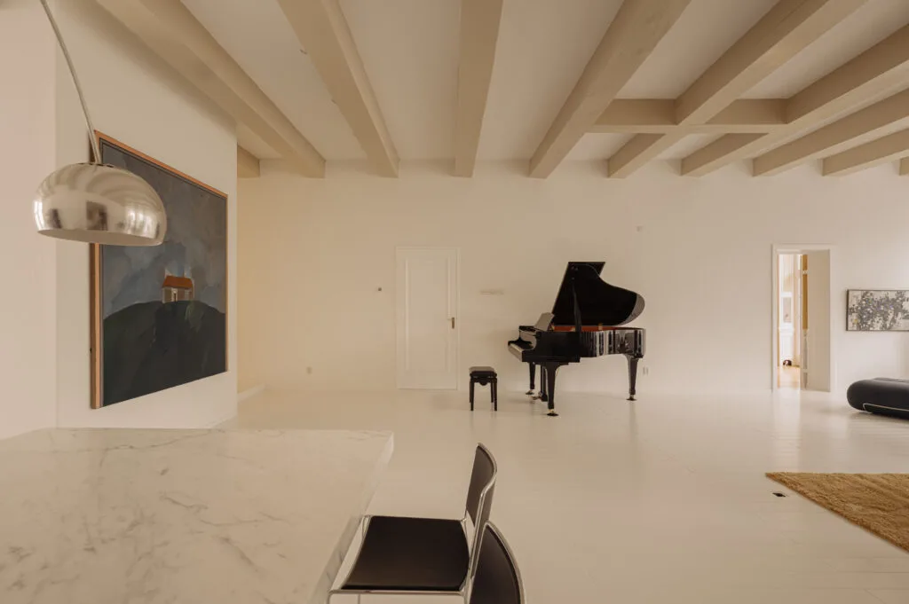 Uitgelicht; Open View, 'Wat ik het meest waardeer, is het gevoel van rust en de nuances die het licht gedurende de dag door het huis werpt, samen met de tinten van de kleuren in het interieur. Het licht is heel bijzonder, net als het uitzicht over het plein. Ik voel me het meest op mijn gemak in de woonkamer, omdat het er ontspannen en knus is in de winter, en ik in de zomer de openslaande deuren kan openen om te genieten van de frisheid van de zomeravond en de zonsondergang kan zien.' Lees hier meer wat de huidige bewoners vertellen