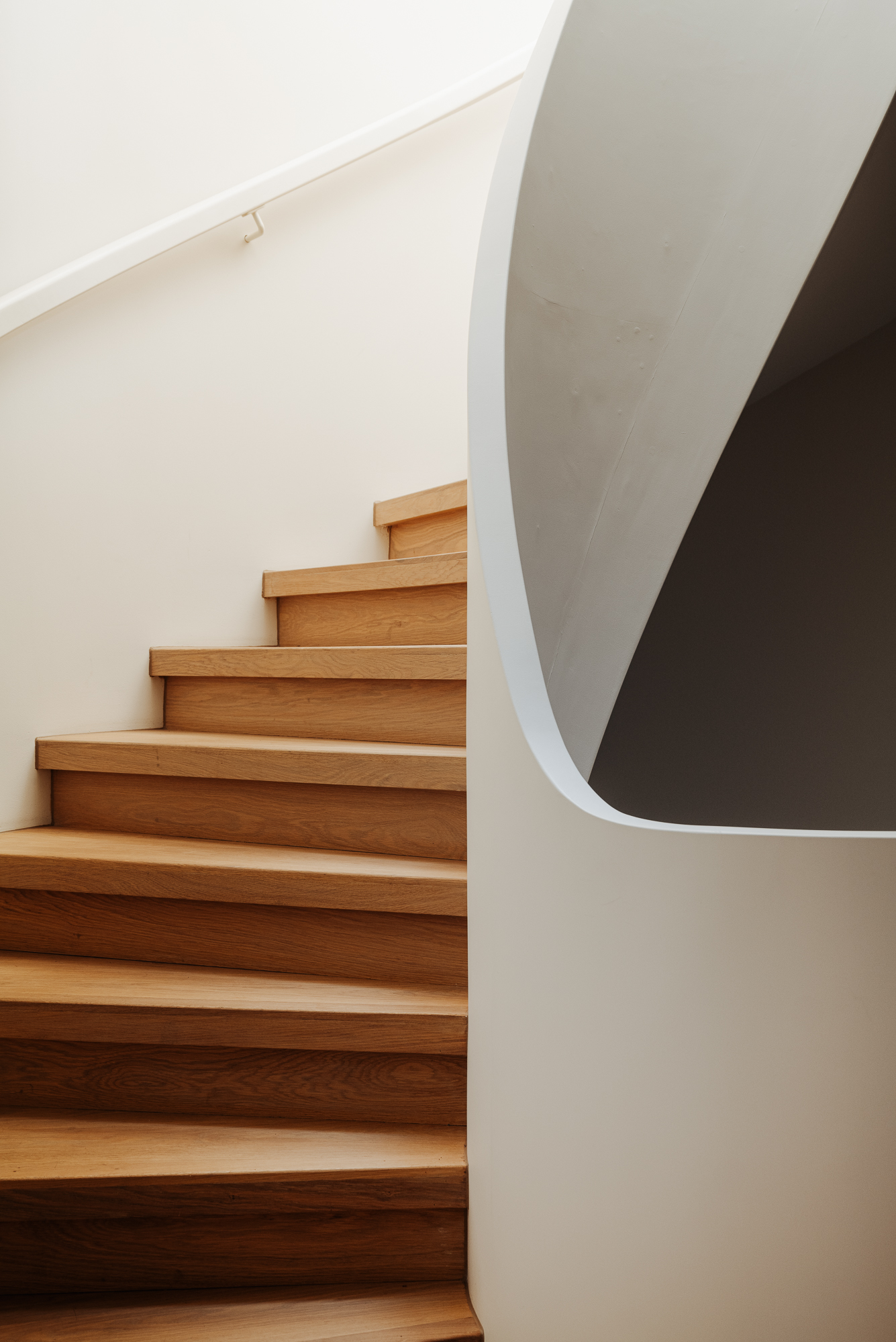 ‘Het is een heel rustig huis, maar stil is vooral de bovenste verdieping waar we ‘s ochtends kunnen werken en ‘s avonds naar de vogels kunnen luisteren – in de winter binnen, in de zomer buiten. Dan eten we tot laat in de avond met vrienden op het dakterras. En als het echt warm is kun je er in de hangmat heerlijk slapen.’