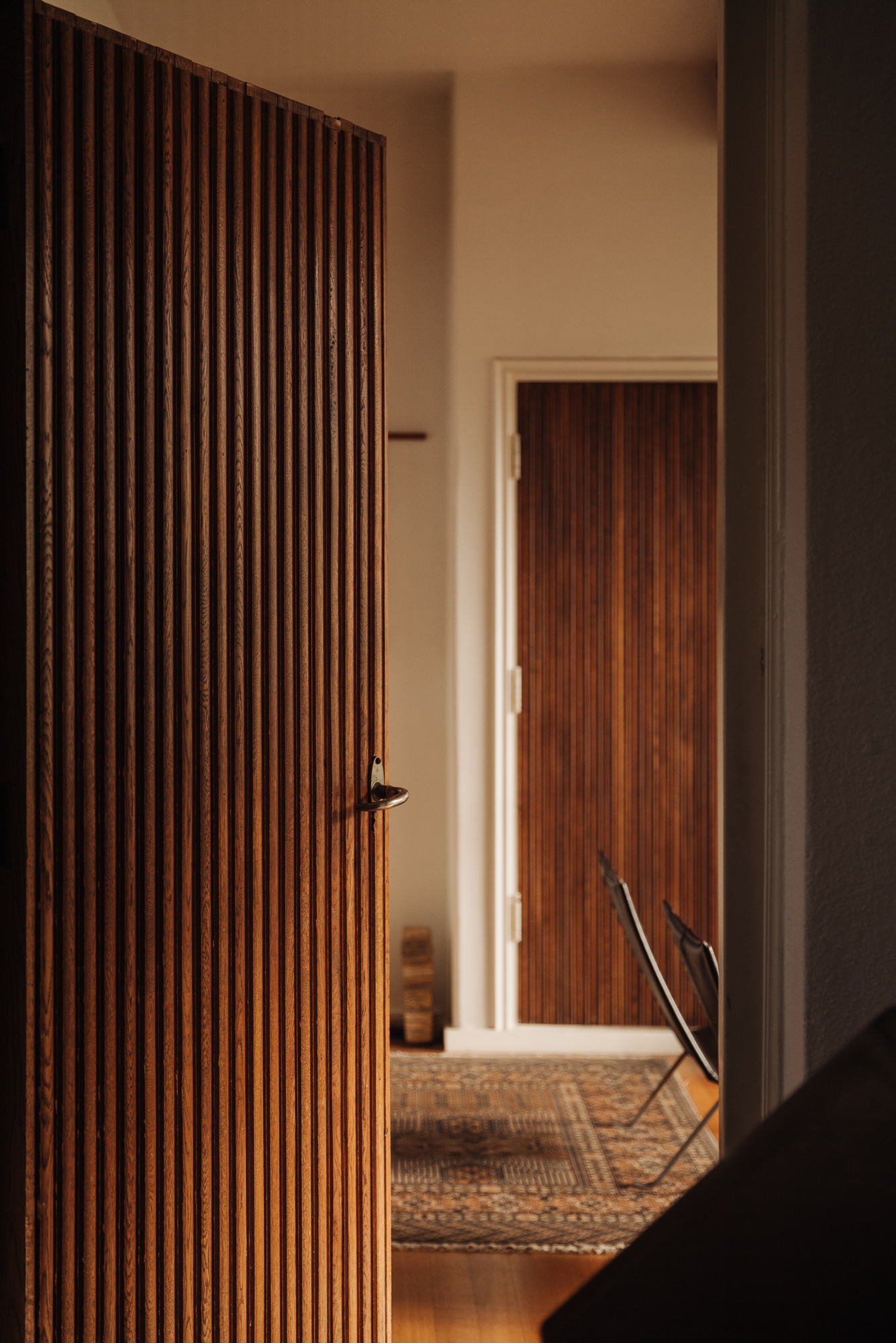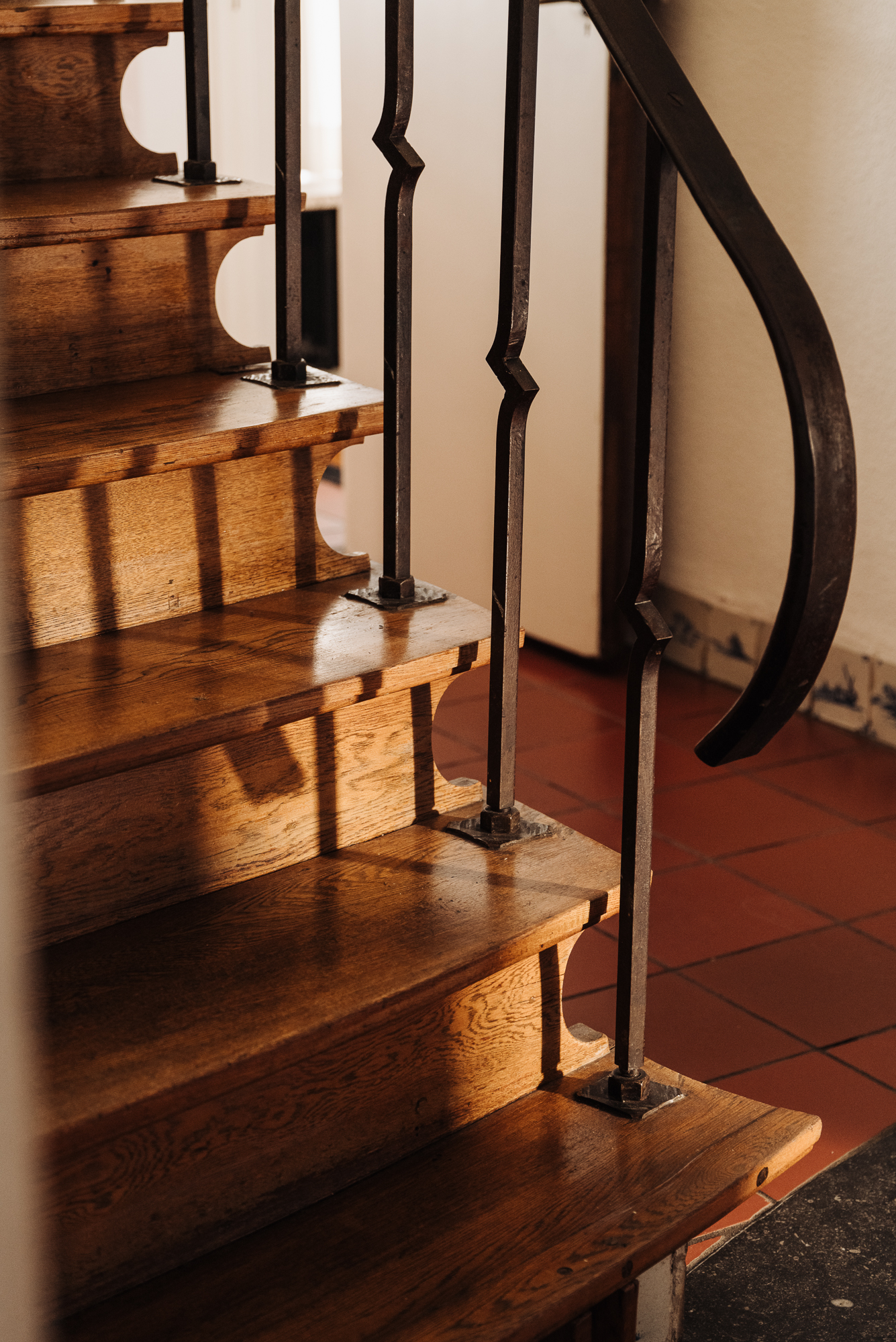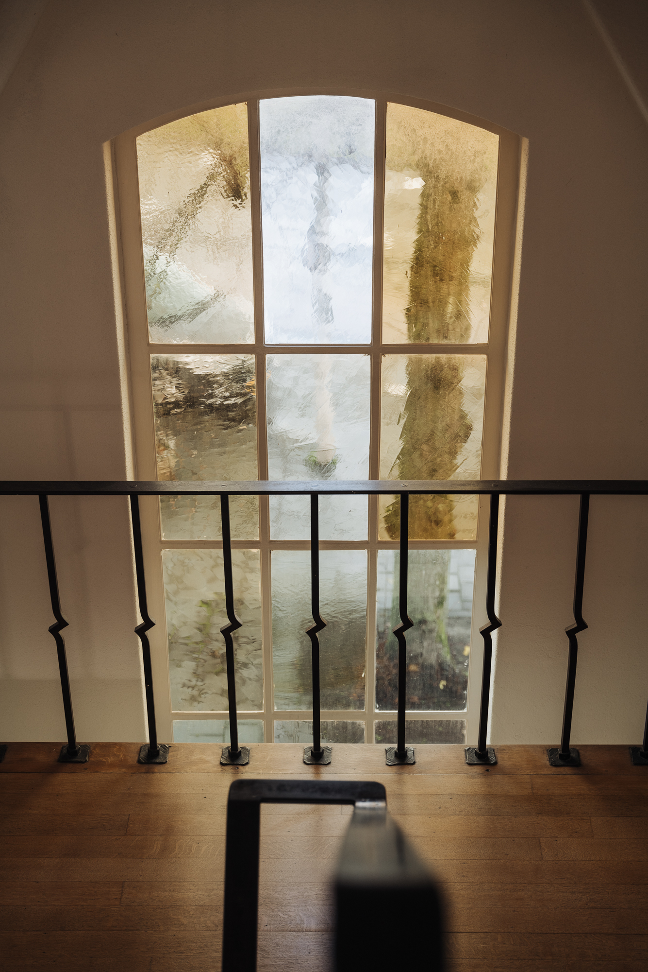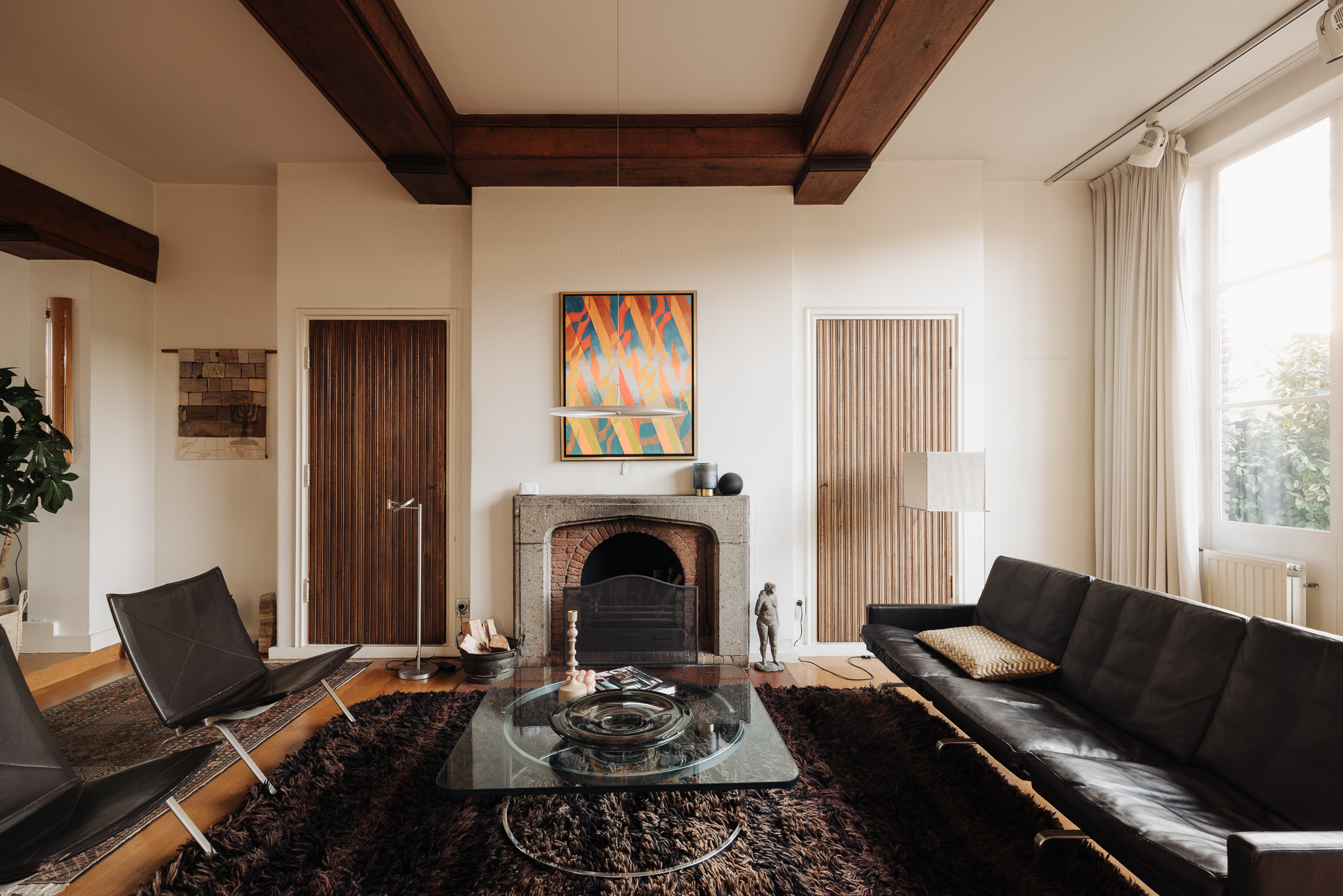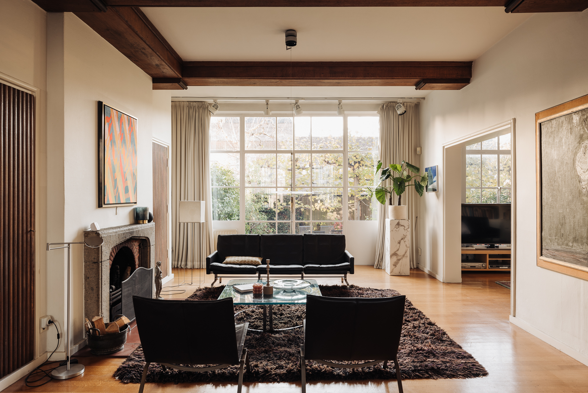 'Het karakter is tijdloos met architectonische stijlkenmerken. De lambrisering, stalen ramen en houten balken zijn bijna honderd jaar oud en geven de woning zijn authentieke uitstraling.'