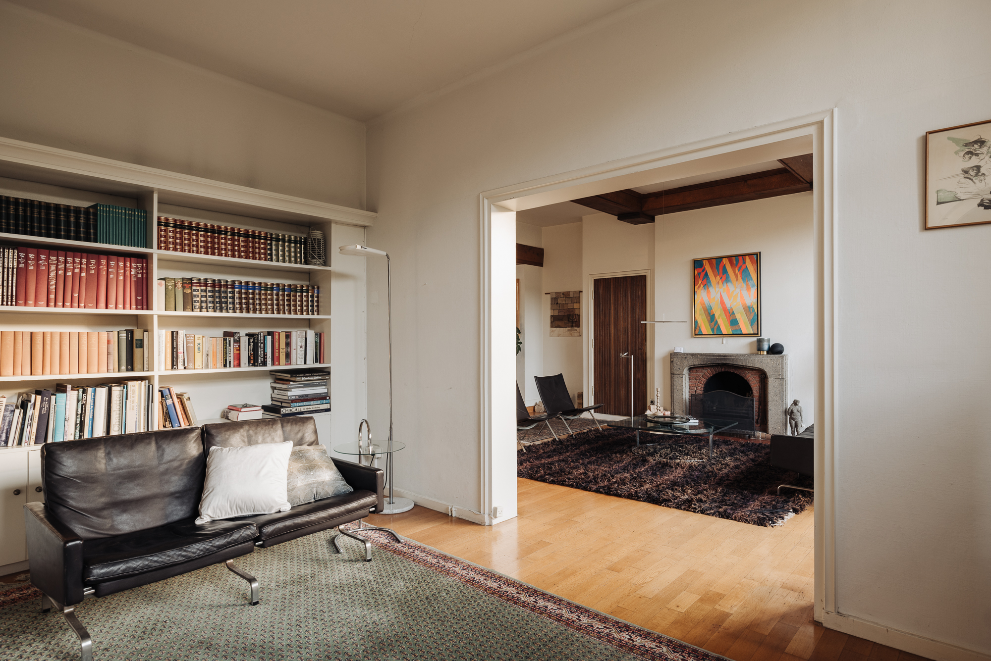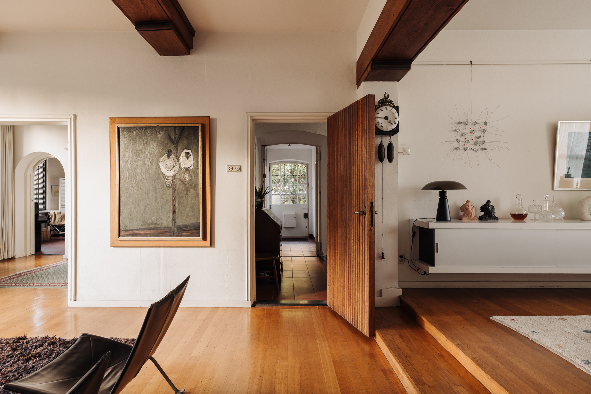 'Het 378 m² tellende familiehuis met houten details en klassieke houthaard is oorspronkelijk gebouwd voor medici, met een praktijk aan huis.'