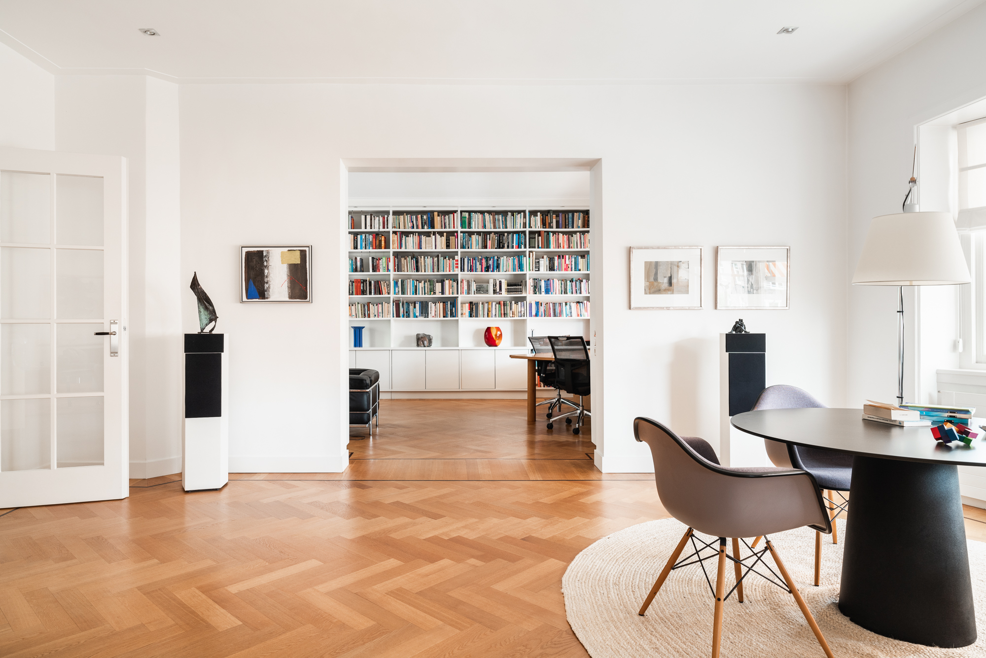 'Door de hoge plafonds, ruime vertrekken en het vele licht heeft het appartement veel allure en ruimte.'