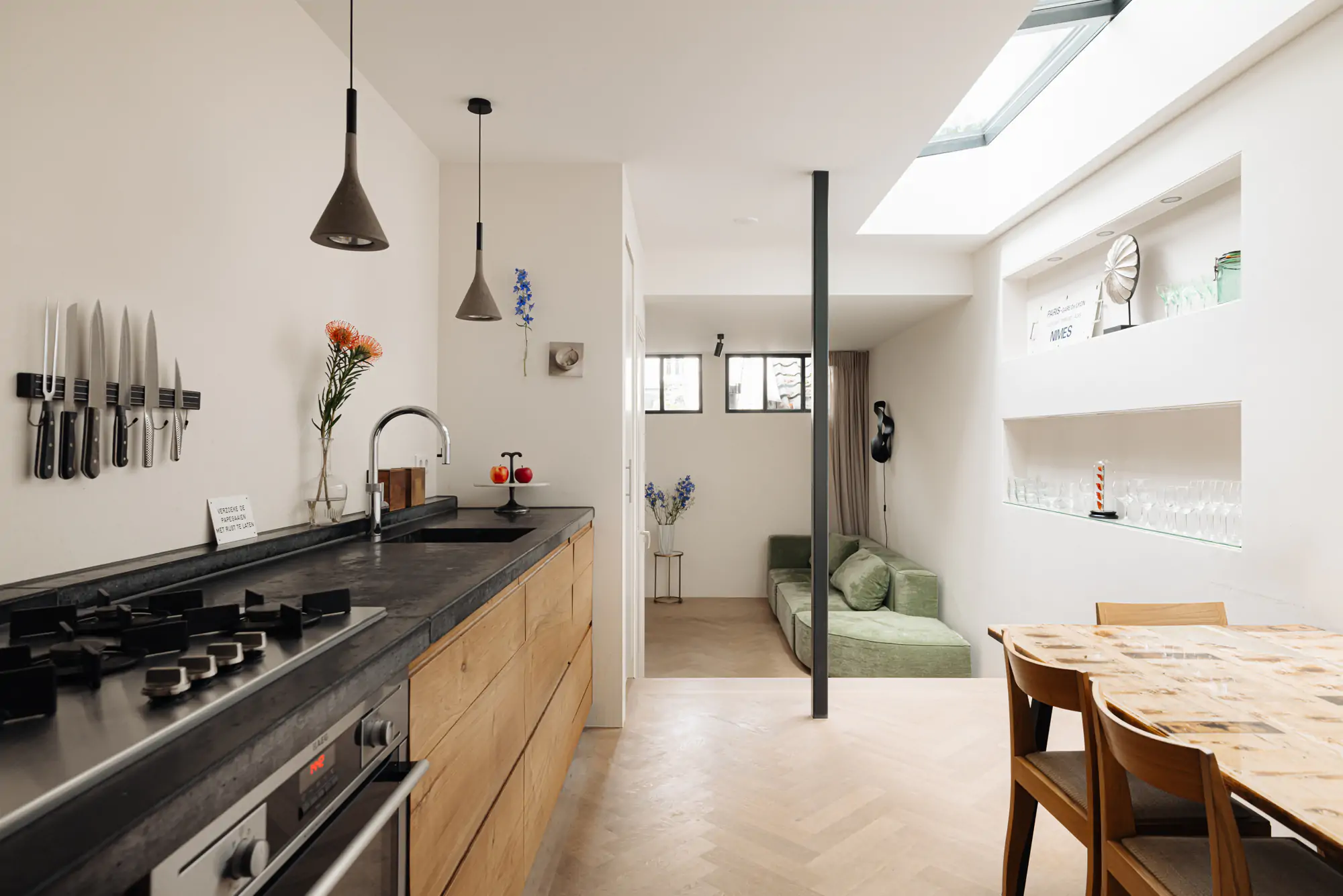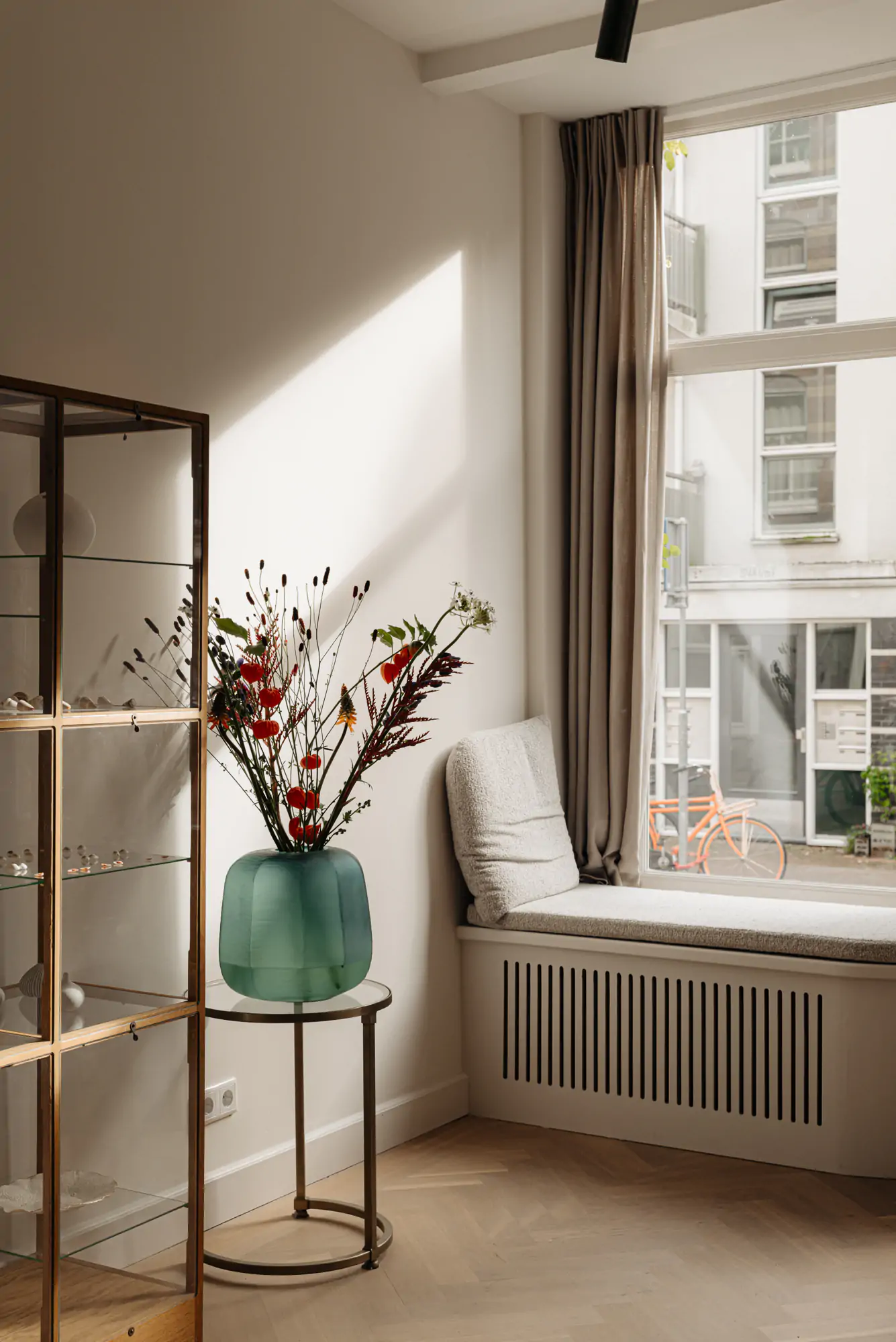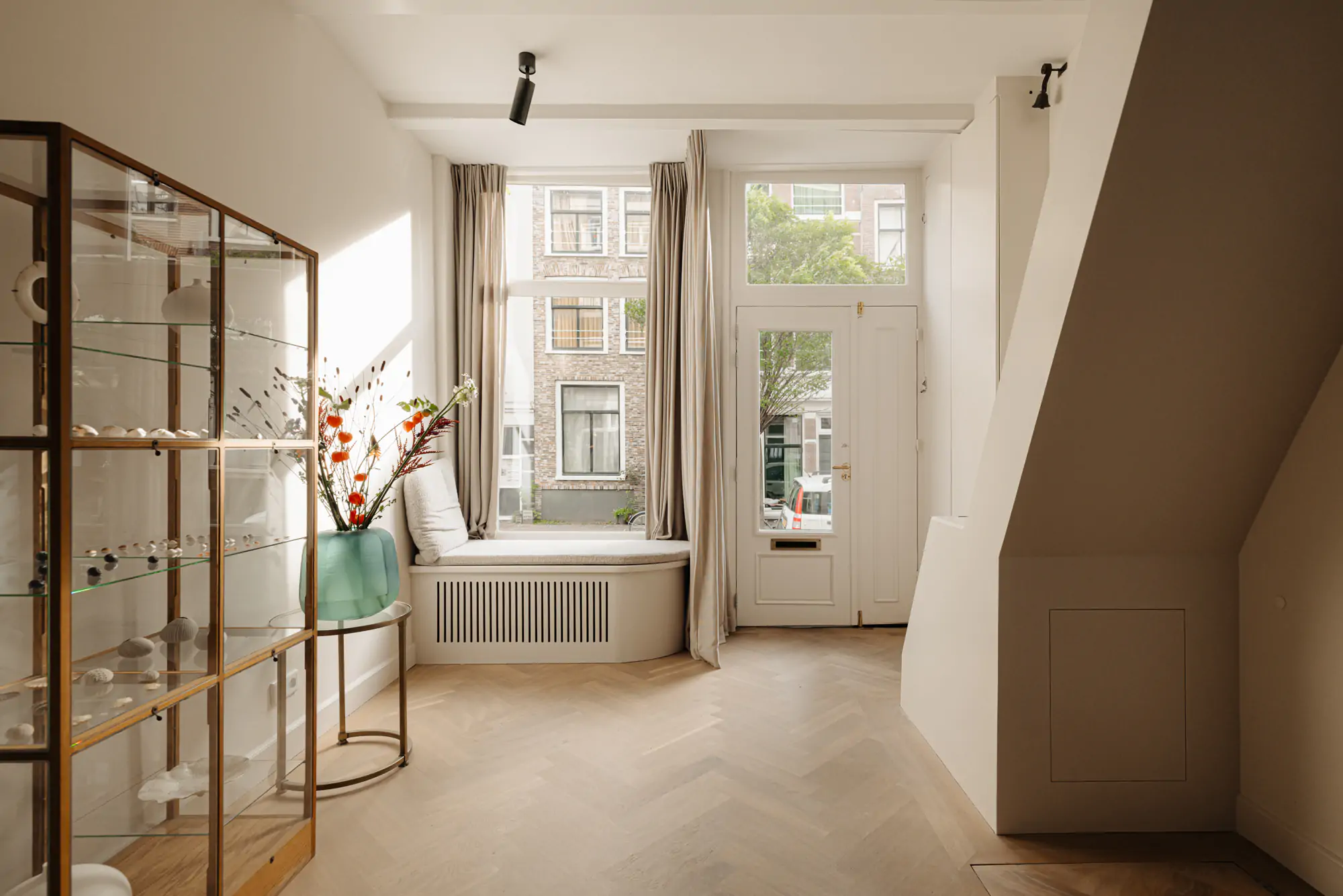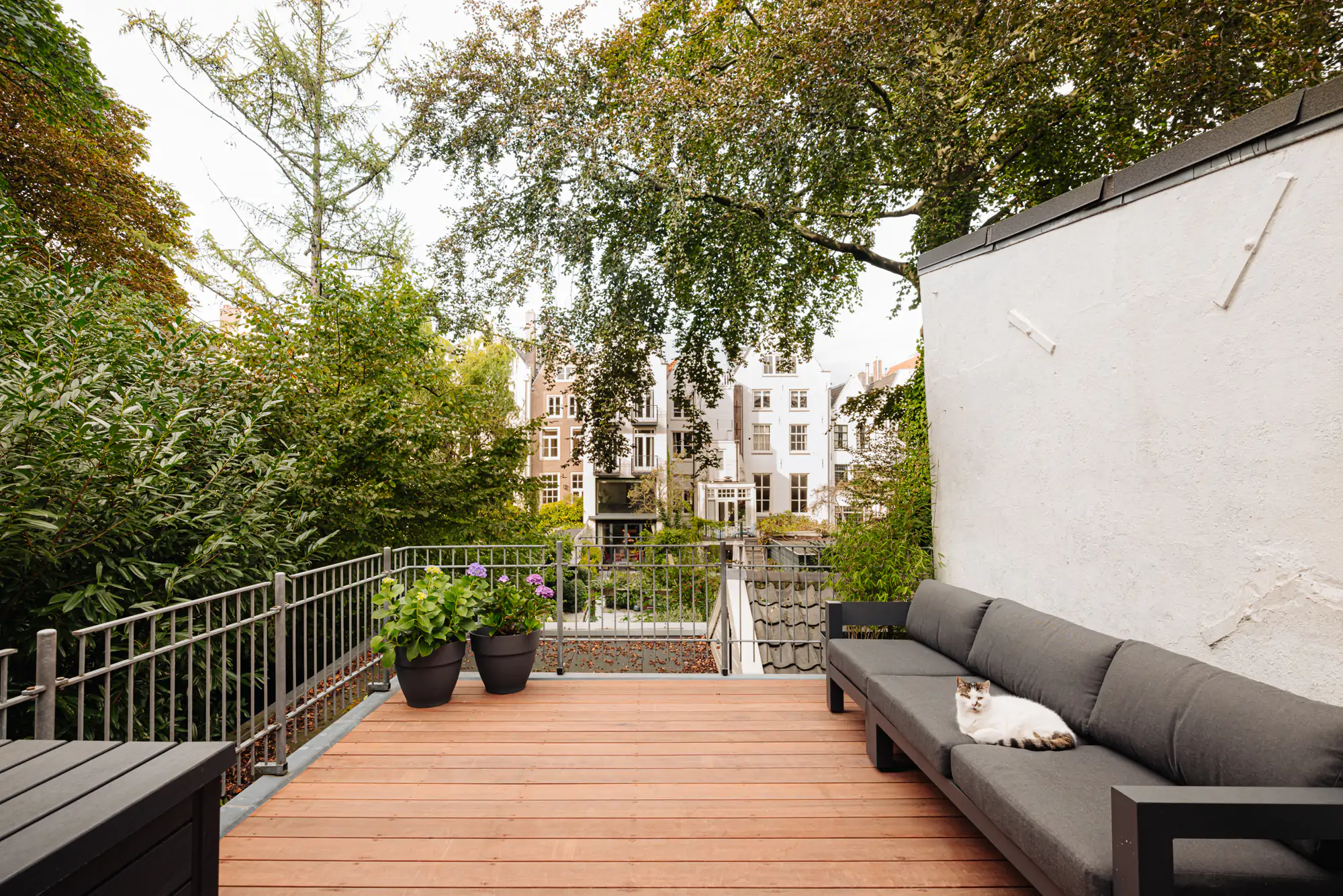 Het fijnste plekje is op het stoepje in de zon. Daar ontbijten als de stad ontwaakt, een broodje eten terwijl vrienden langs fietsen of borrelen met de buren. Als je even geen zin hebt in mensen, dan is het dakterras uitkijkend over de groene binnentuinen ook heerlijk.