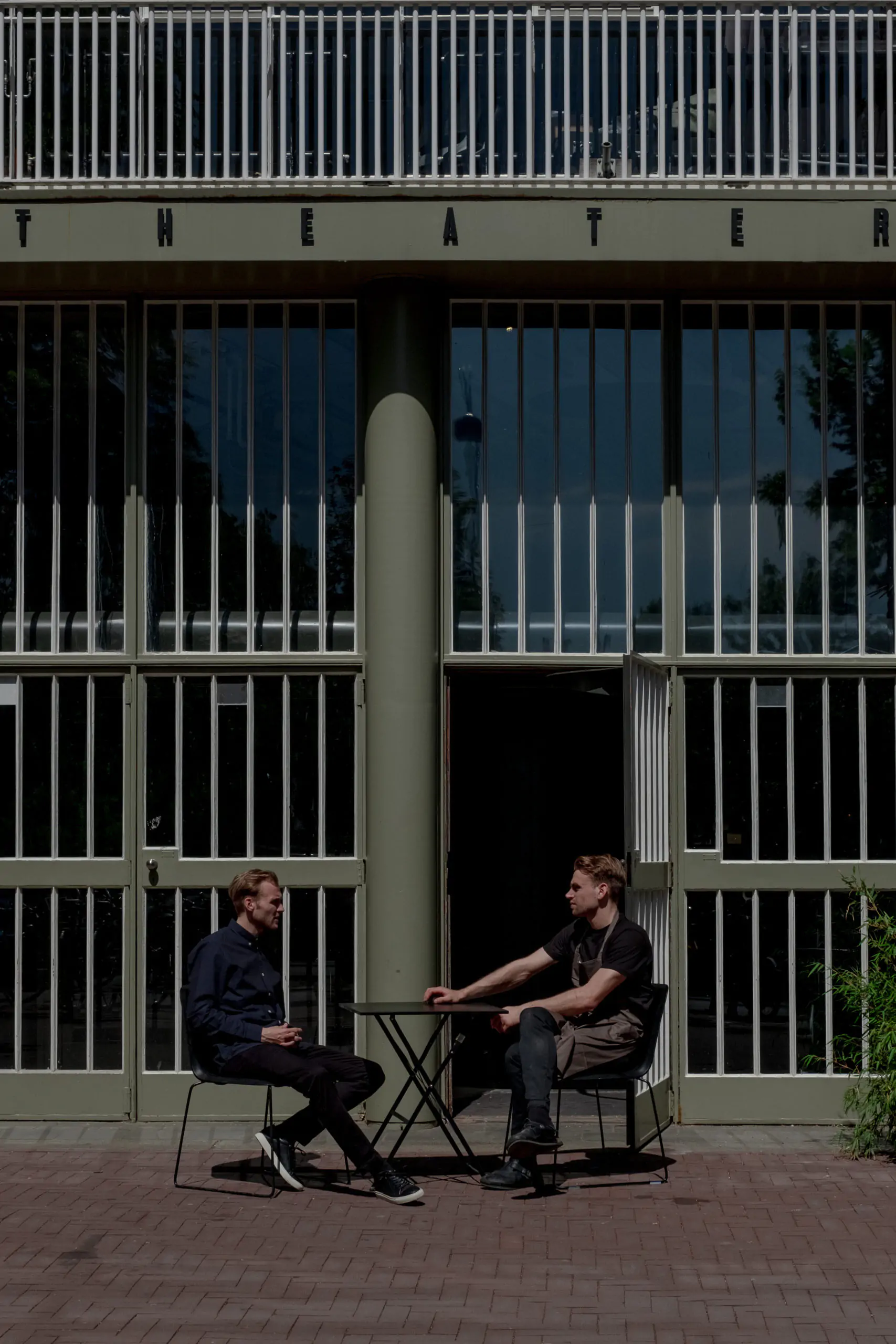 Jochem; ‘Het pand kwam op ons pad via eigenaar ‘Millten’, waar Broersma Werken de verhuuropdracht voor verzorgde. Wij zaten met …,staat, ons creative agency, op de Ruyterkade en daar waren we uit ons jasje gegroeid. Julia en ik waren al jaren verliefd op de pui van het werktheater. Wij woonden hierachter en fietsten dagelijks langs op weg naar de school van onze dochter. Er bleek een horecavergunning op te zitten en wij dachten; stel je voor, we maken daar een mooie dagzaak met een goed ontbijt en lunch en we organiseren seminars, talks, lezingen, presentaties en pr-events. Dat is het Newwerktheater geworden. Een fotostudio, eventspace, een restaurant, winkeltje en ons reclamebureau. Een nieuwe vorm van werken en een hele fijn tijd. Ook als bureau werden we meer zichtbaar. Er ontstond een hele fijne reuring en kruisbestuiving tussen verschillende disciplines. Maar het was een compleet nieuw bedrijf. Na een werkdag in het reclamebureau begon de werkdag in het Newwerktheater. Na enkele jaren ging de hoeveelheid werk ten koste van ons bureau en kwamen we via Piet Boon in contact met de ondernemers achter restaurant Coulisse. Dat bleek een perfecte match te zijn’.