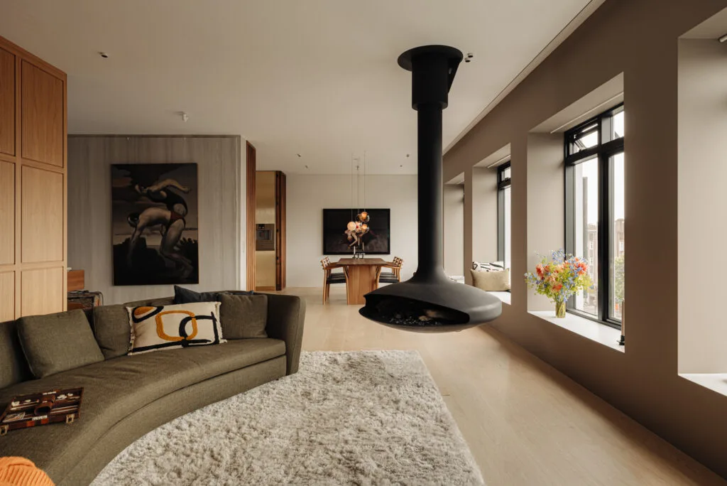 ‘Een plek voor rust en feest. Op de bovenste verdieping heb je een huis waar je overdag geen licht hoeft aan te doen—zeldzaam in Amsterdam. Parkeren en licht waren voor ons essentieel, en beide zijn hier perfect. De auto staat in de parkeergarage, en je hebt hem niet meer nodig. Aan de achterkant is het stil, ideaal om in te slapen. Aan de voorkant is er altijd leven: bootjes, wandelende mensen en een prachtig uitzicht op de 17e-eeuwse stad. Het huis is licht, ruim en modern, met rustige, hoogwaardige materialen.’