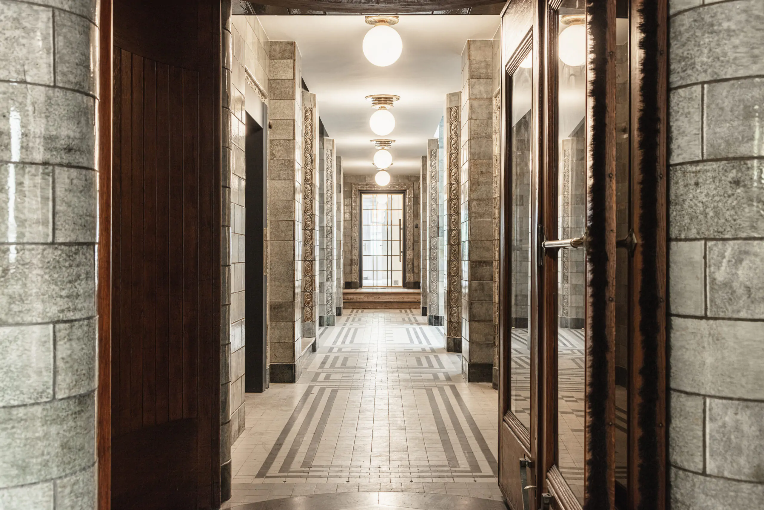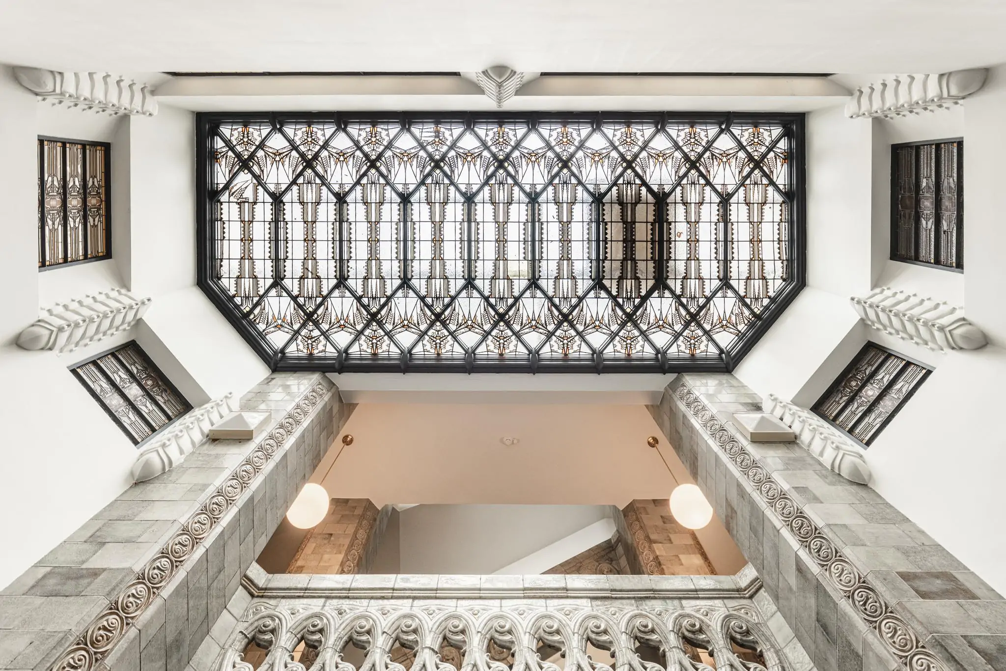'Bij binnenkomst wordt je verwelkomd door een karakteristieke hal en trappenhuis, gekenmerkt door grijsblauw geglazuurd keramiek en glas-in-loodramen. De ruime indeling, kenmerkende details en overvloed aan natuurlijk daglicht zijn onmiskenbaar zodra je de eerste verdieping betreedt. Het hart van de kantoorruimte wordt verlicht door een groot daklicht, wat zorgt voor een open en lichte sfeer in de hele ruimte. De grote hoge ramen aan zowel de voor- als achterzijde laten veel natuurlijk licht binnen en creëren een inspirerende omgeving.'