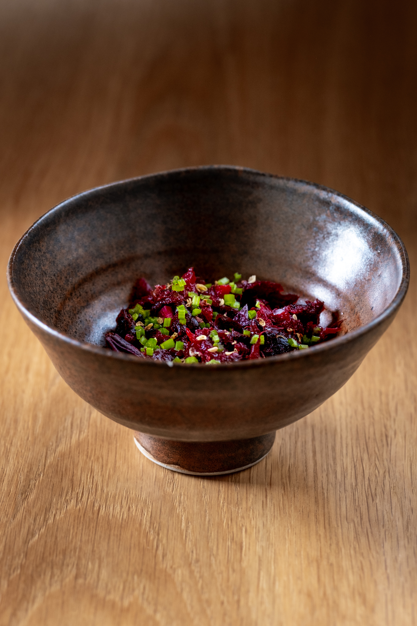 Geroosterde crapaudine biet, Szechuan en koriander