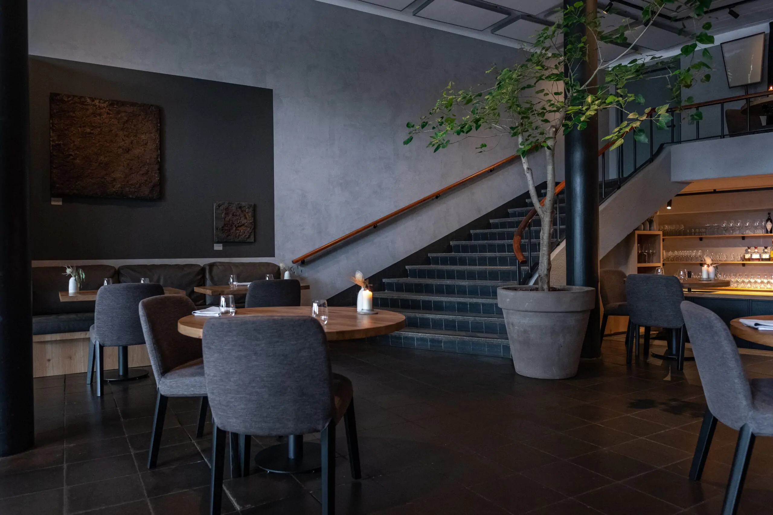 Simon: ‘Wij komen zelf alle twee uit Amsterdam Oost / Watergraafsmeer, kennen elkaar sinds onze 18e en waren al een tijdje aan het rondkijken voor een geschikte locatie. We waren op zoek naar iets bijzonders. De langste tijd hebben besteed aan een pand in Noord. Toen dat stuk liep werd het lastig. Via via kwamen we met Jochem van …,Staat in contact die een horeca onderhuurder zocht voor deze locatie. Het klikte direct en wij waren weg van het pand. De locatie, uitstraling, oppervlakte en karakter. Alles was goed. Ook de lay out en beschikbaarheid van de keuken was ideaal. De verbouwing beperkte zich eigenlijk vooral tot de inrichting die wij met Piet Boon hebben gedaan.