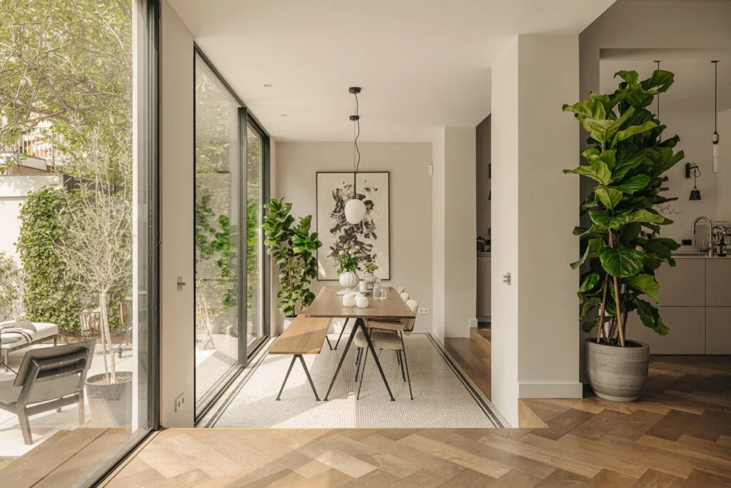 Vier jaar geleden kochten we dit huis, dat toen nog door studenten werd bewoond en dringend aan renovatie toe was. Wij zien uitdagingen als kansen, dus hebben we alles gesloopt en vanaf nul opgebouwd om de perfecte indeling te creëren. We hebben het huis volledig gesloopt om de perfecte indeling te kunnen creëren, zodat de ruime living van 9 meter breed uitkijkt op de zonnige tuin. Dit maakt ons huis uniek in de buurt. Met drie slaapkamers, twee badkamers, een apart kantoor en een grote living met open keuken, eetkamer en woonkamer, is er veel ruimte en licht. Omdat wij beiden veel werken, wilden we een huis dat rust uitstraalt. Tijdens vakanties vroegen we ons vaak af: “Waarom kunnen we dit niet thuis hebben?” Dit idee hebben we in ons ontwerp meegenomen. We zijn grote liefhebbers van design en verzamelen kunst. Ons huis is uitgerust met luxe designmerken en technologische snufjes, zoals verfijnde Buster and Punch schakelaars, een futuristisch Japans toilet en hoogwaardige Gaggenau-apparatuur. De combinatie van donkere houten vloeren, linnen behang, walnoot eikenhout, marmer en warme kleuren geeft een tijdloze uitstraling. Onze favoriete plek in het huis is de eetkamer. We hebben gekozen om de uitbouw te laten onder kelderen, waardoor we een gezellige zitkuil hebben kunnen maken, voorzien van een marmeren mozaïekvloer zoals in Franse bistro’s. In de zomer kunnen de deuren volledig open, waardoor binnen en buiten naadloos in elkaar overgaan. De groene uitkijk vanuit de living is een zeldzaam voordeel in Amsterdam. Wat we ook waarderen aan de buurt, is de gezellige sfeer. De Maasstraat ligt op een steenworp afstand met de beste bakker, slager en groenteboer. In de zomer is het een korte wandeling naar de Amstel voor een verfrissend glas wijn of een wandeling langs het water. Parkeren is eenvoudig voor de deur en de snelwegen A1 en A2 zijn snel bereikbaar. Tram en bushalte liggen op 30 meter afstand. We zullen zowel het huis als de buurt missen. Het biedt comfort, luxe, en een warme gemeenschap die ons altijd het gevoel gaf thuis te zijn. Onze favoriete plekken in de buurt zijn TOET voor taartjes, van Vessem voor brood, Grammes voor croissants, Slager ten Wolde voor vlees, Lemonode Concept Store voor cadeaus, Arrebol voor wijn, en IJsland voor ijs.