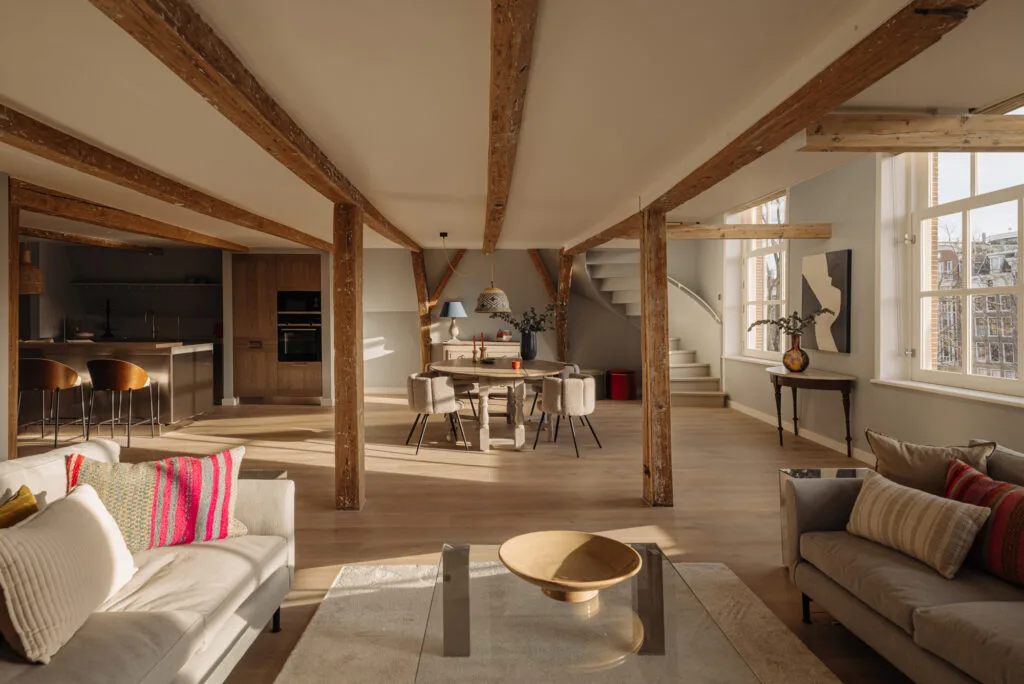 Het gebouw aan het Singel maakt direct indruk wanneer je voor de voordeur staat. De kenmerkende rode kleur roept meteen de rijke geschiedenis van de Amsterdamse grachten op. Elk pand langs de gracht heeft zijn eigen unieke stijl en karakter. De Kleine Dolfijn is een van de zeldzame gebouwen die zich onderscheidt door zijn bijzondere breedte. Deze fraaie bouwstijl herken je aan de hoge ramen, de mooie detailleringen en het ruime trappenhuis. Het geheel draagt bij aan de authentieke sfeer die het gebouw uitstraalt.