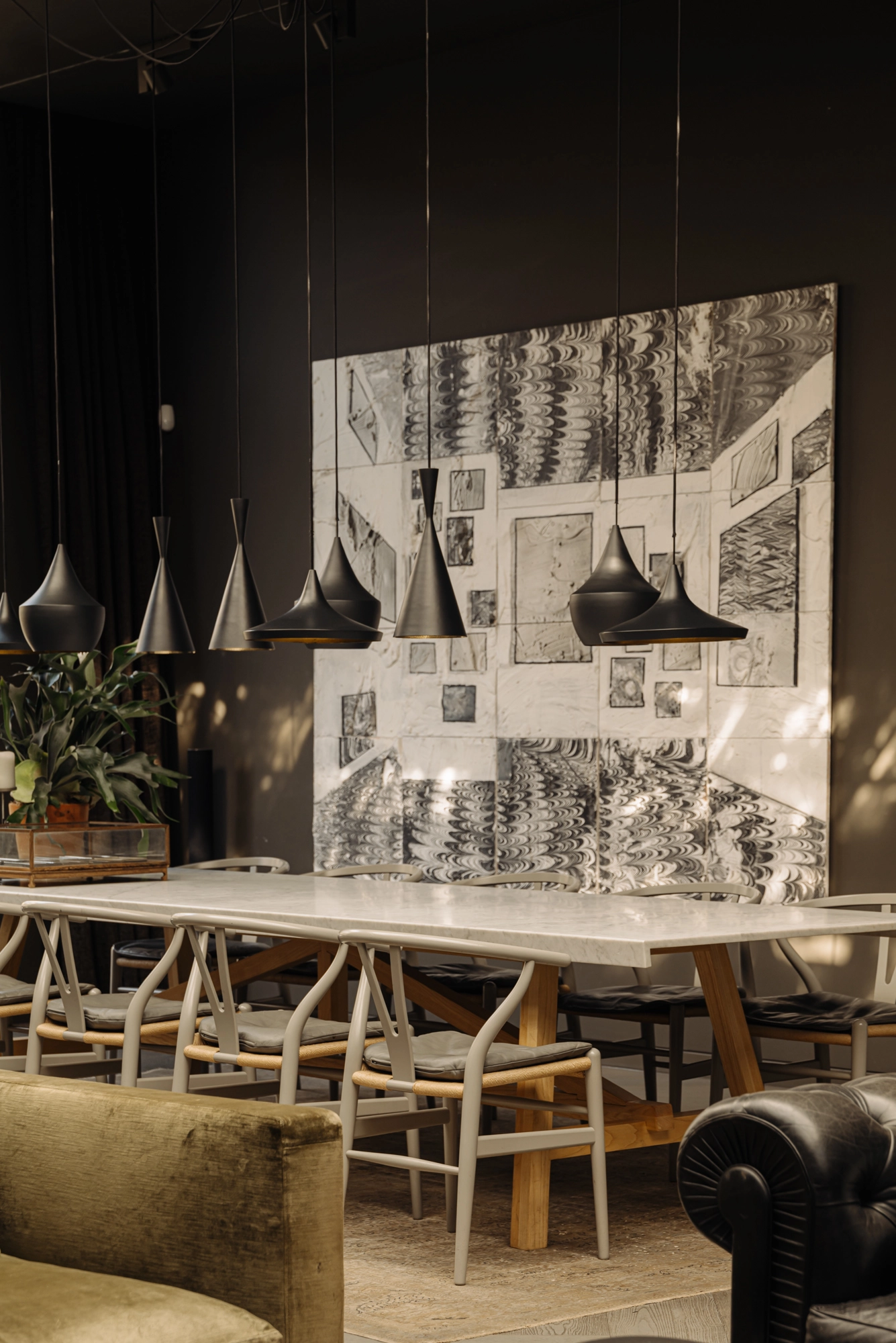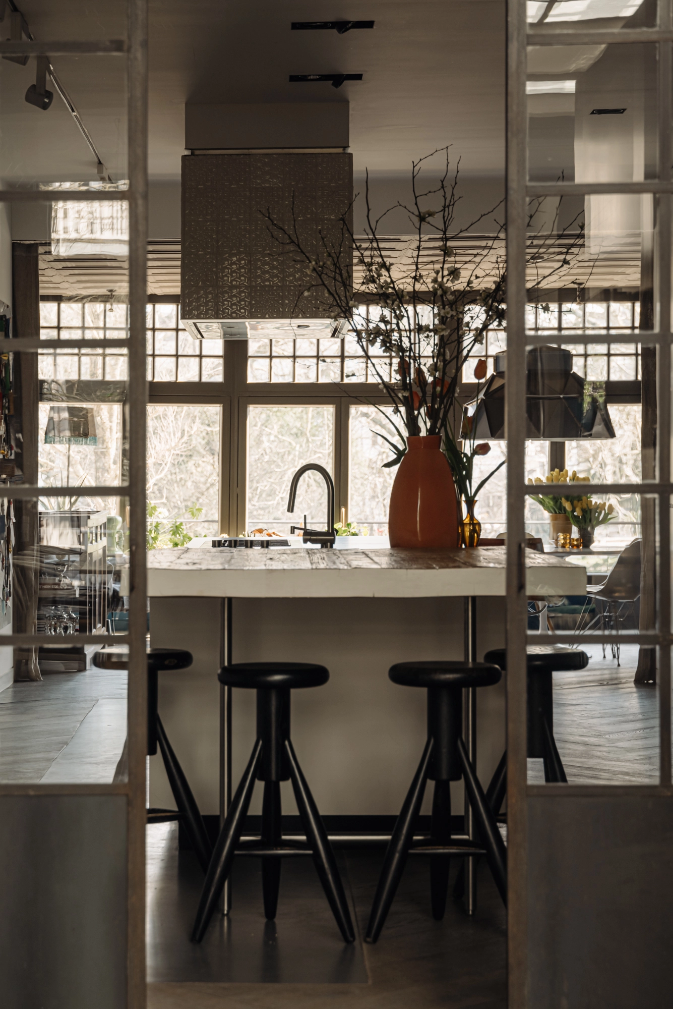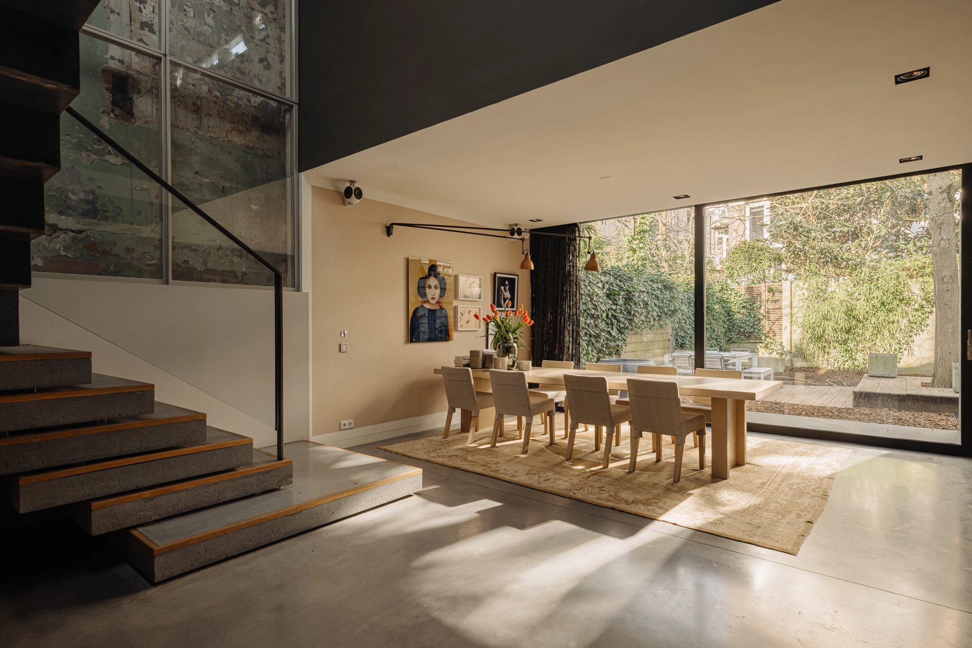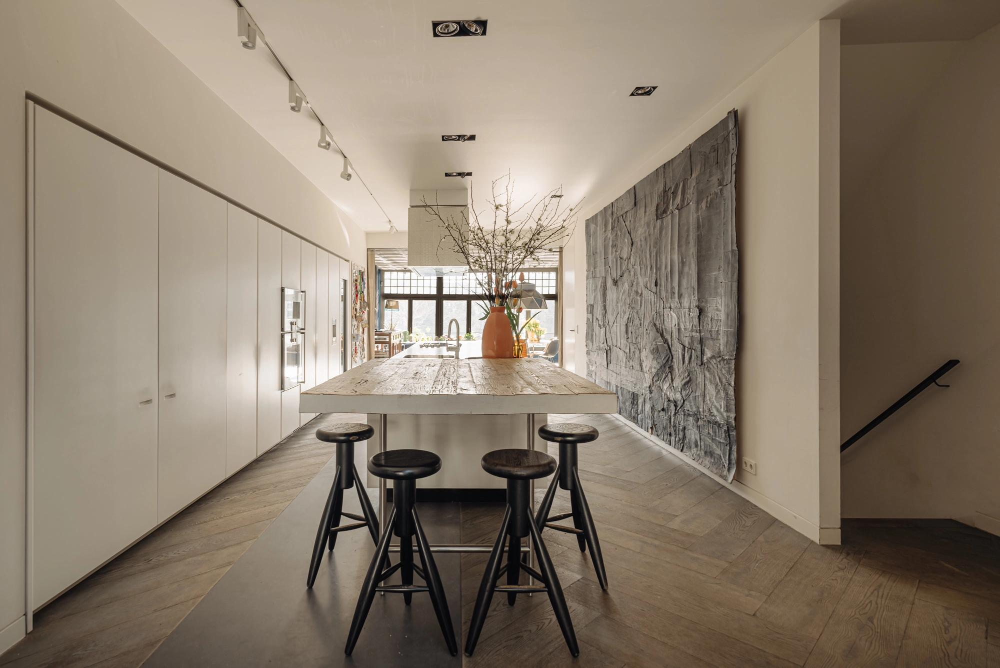 'De vele hoge wanden en het ruimtelijke karakter vormen een natuurlijk decor voor kunstobjecten, een kwaliteit die door de huidige eigenaren met gevoel en precisie is benut.'