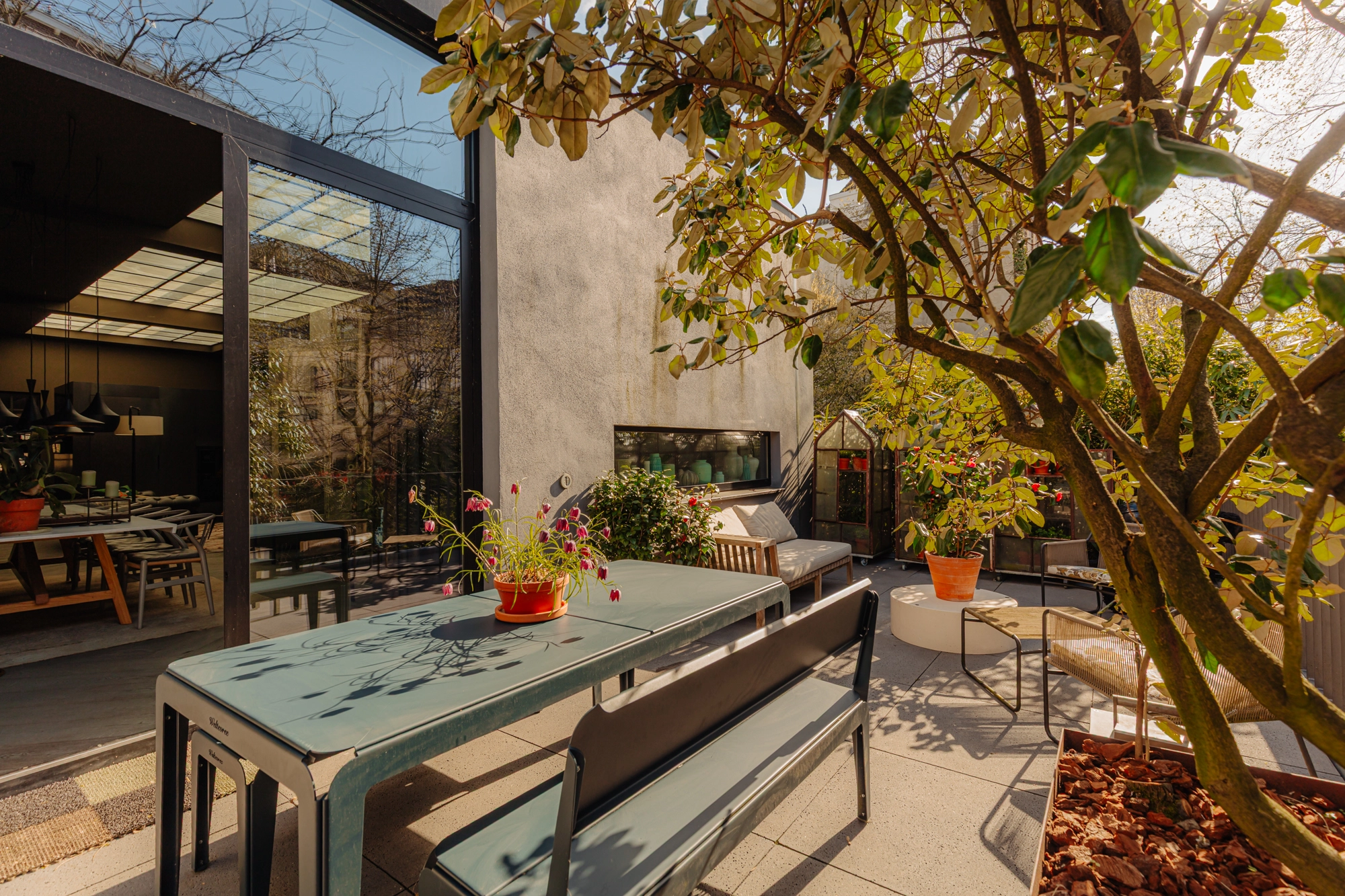 'Een grote glazen pui opent naar het terras, dat is ontworpen als verlengstuk van het dagelijks leven. '