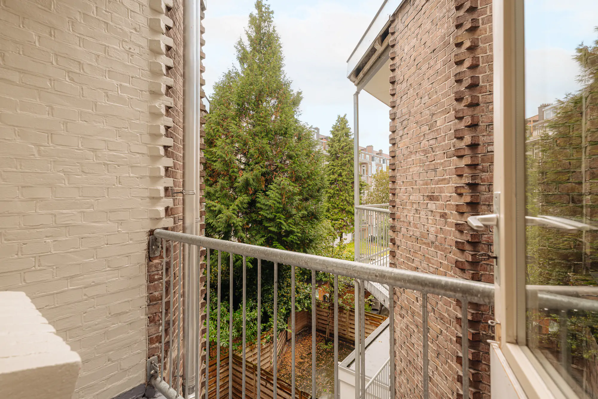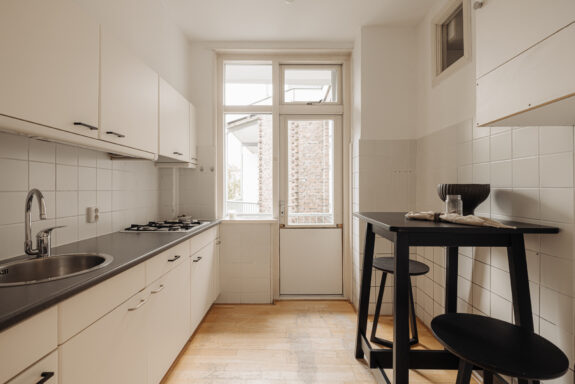 Het kleine balkon is gelegen op het westen, dit betekent zon in de middag. Prettig om op een mooie dag tijdens het koken de deur open te zetten.
