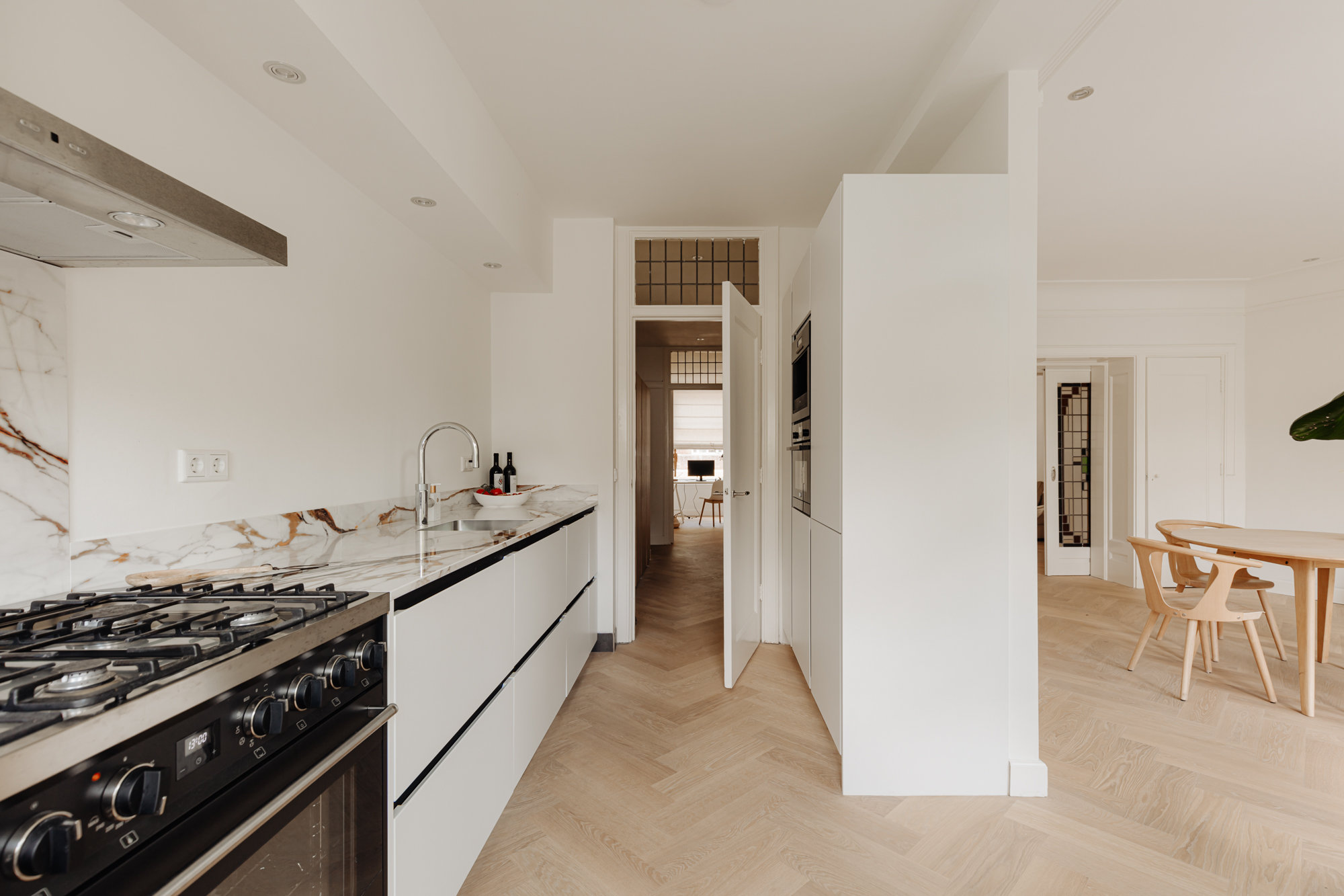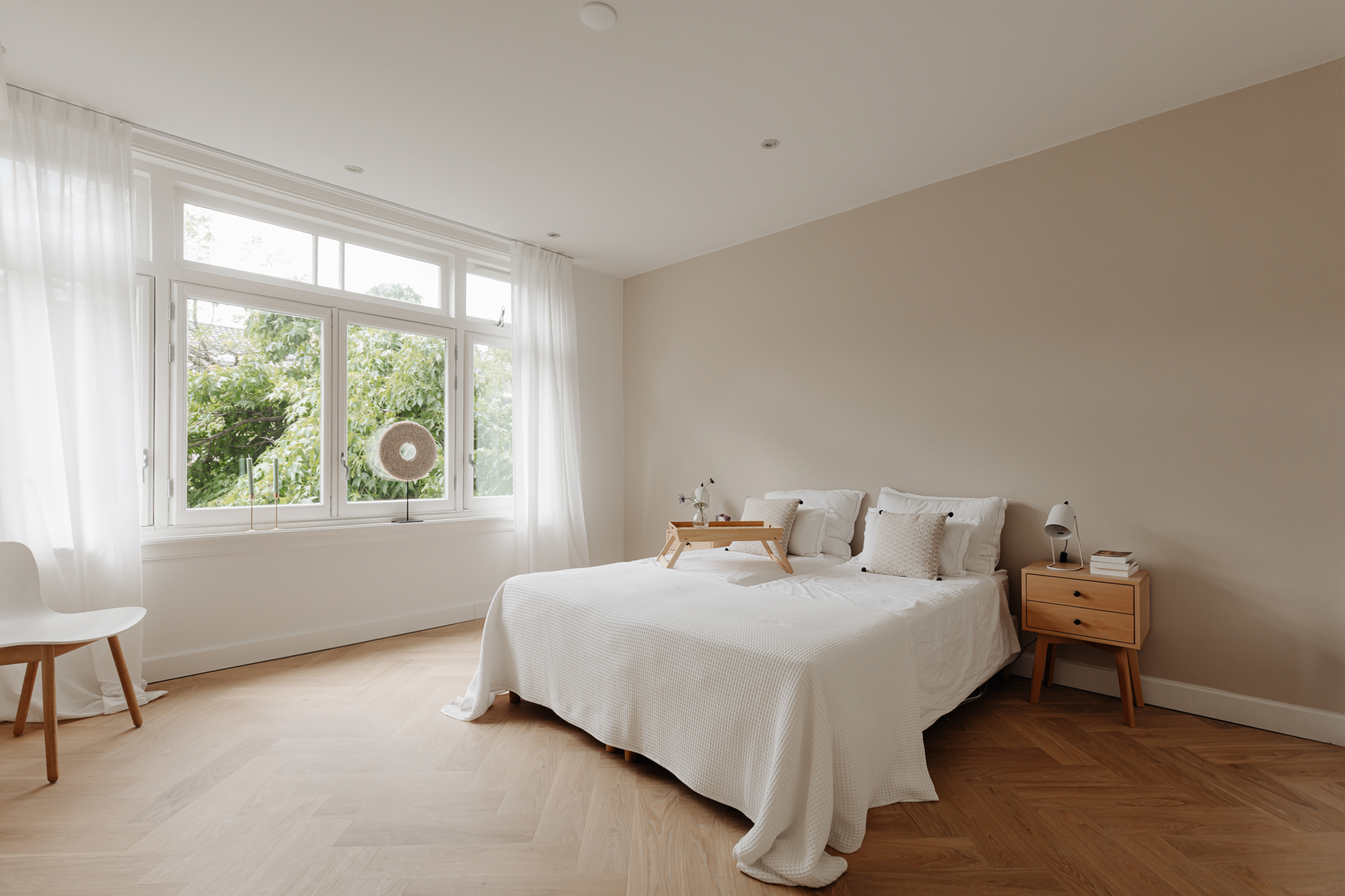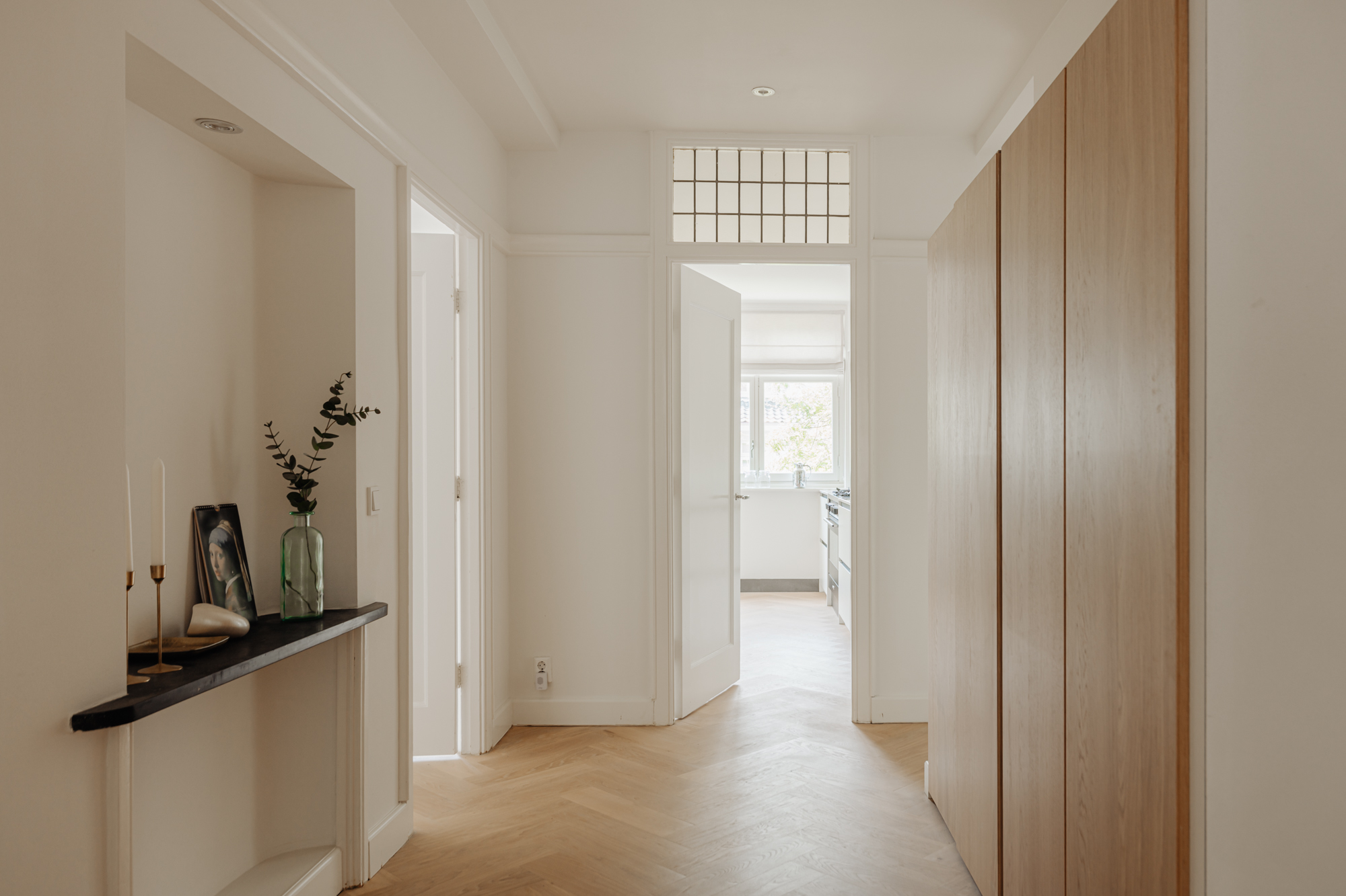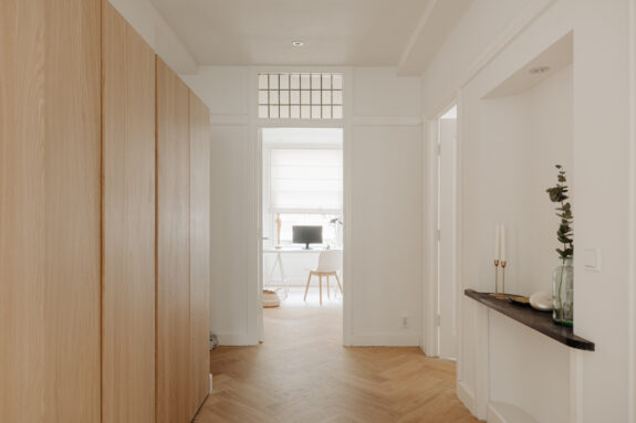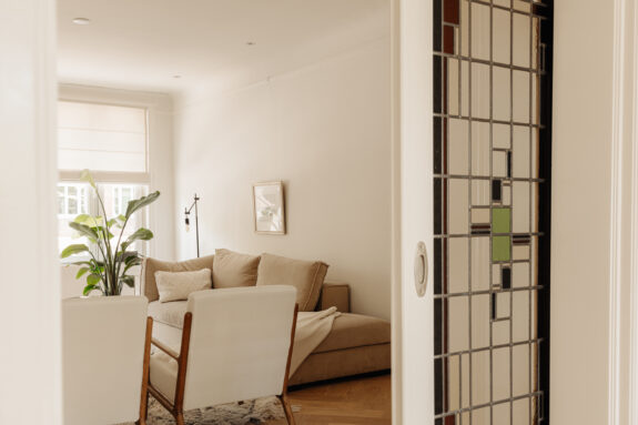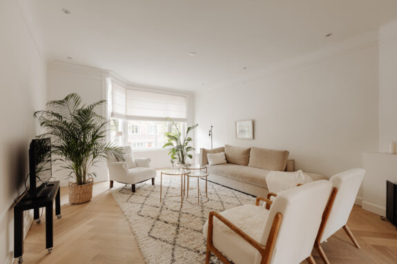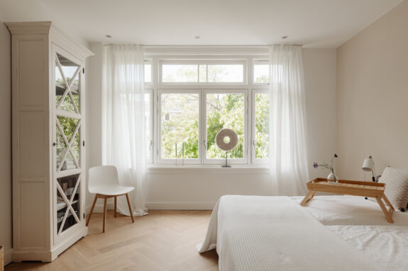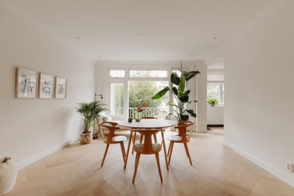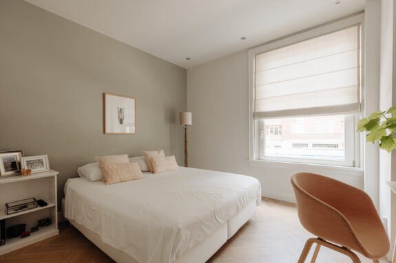 The apartment is situated in one of the quieter sections of the charming Beethovenstraat. The rear of the apartment overlooks expansive gardens and enjoys abundant natural light due to the low-rise buildings on Holbeinstraat. I find these homes particularly appealing for their well-thought-out layout, featuring a traditional en suite design and above all, an abundance of living space. The French doors at the rear invite sunlight to flood in, instantly creating a sense of home.