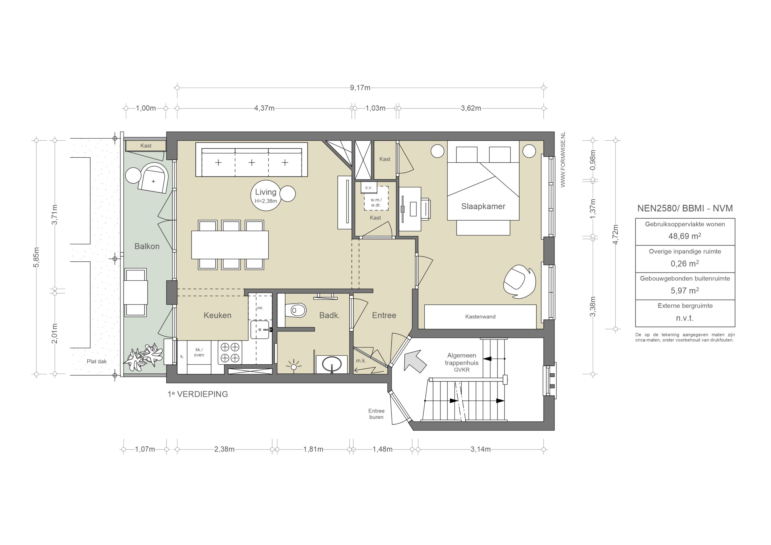 Bijzonder licht en sfeervol appartement van 49 m² op de eerste verdieping gelegen op eigen grond. Deze bovenwoning heeft een eigentijdse uitstraling en is keurig onderhouden.