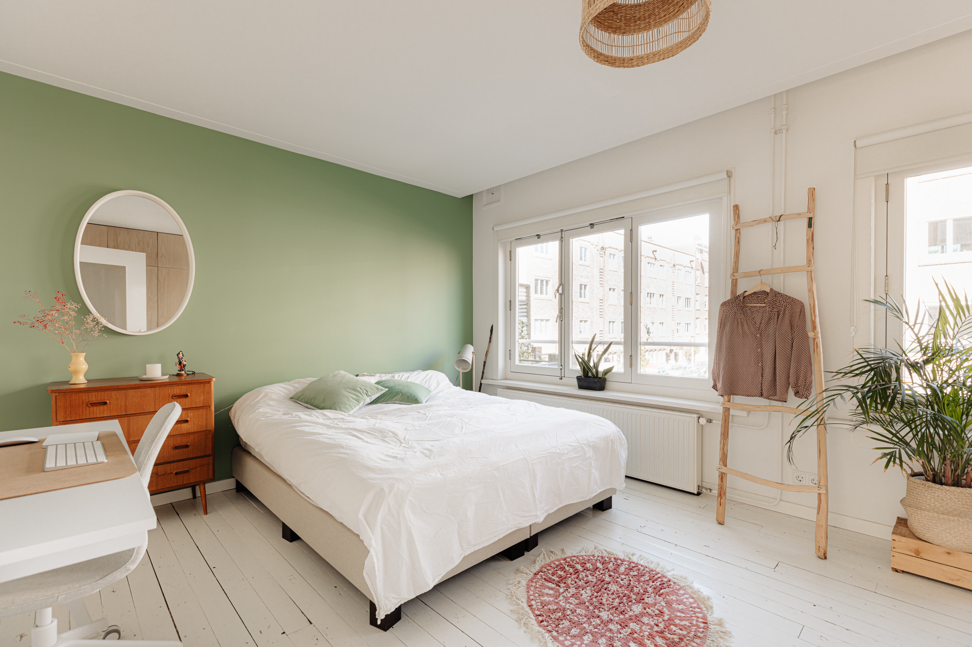 De royale slaapkamer is aan de voorzijde en heeft een prachtige kastenwand. Er is een mogelijkheid om een tweede slaapkamer te creëren. Zie alternatieve indeling. De hippe badkamer is ruim opgezet en heeft een inloopdouche, wastafelmeubel en toilet.