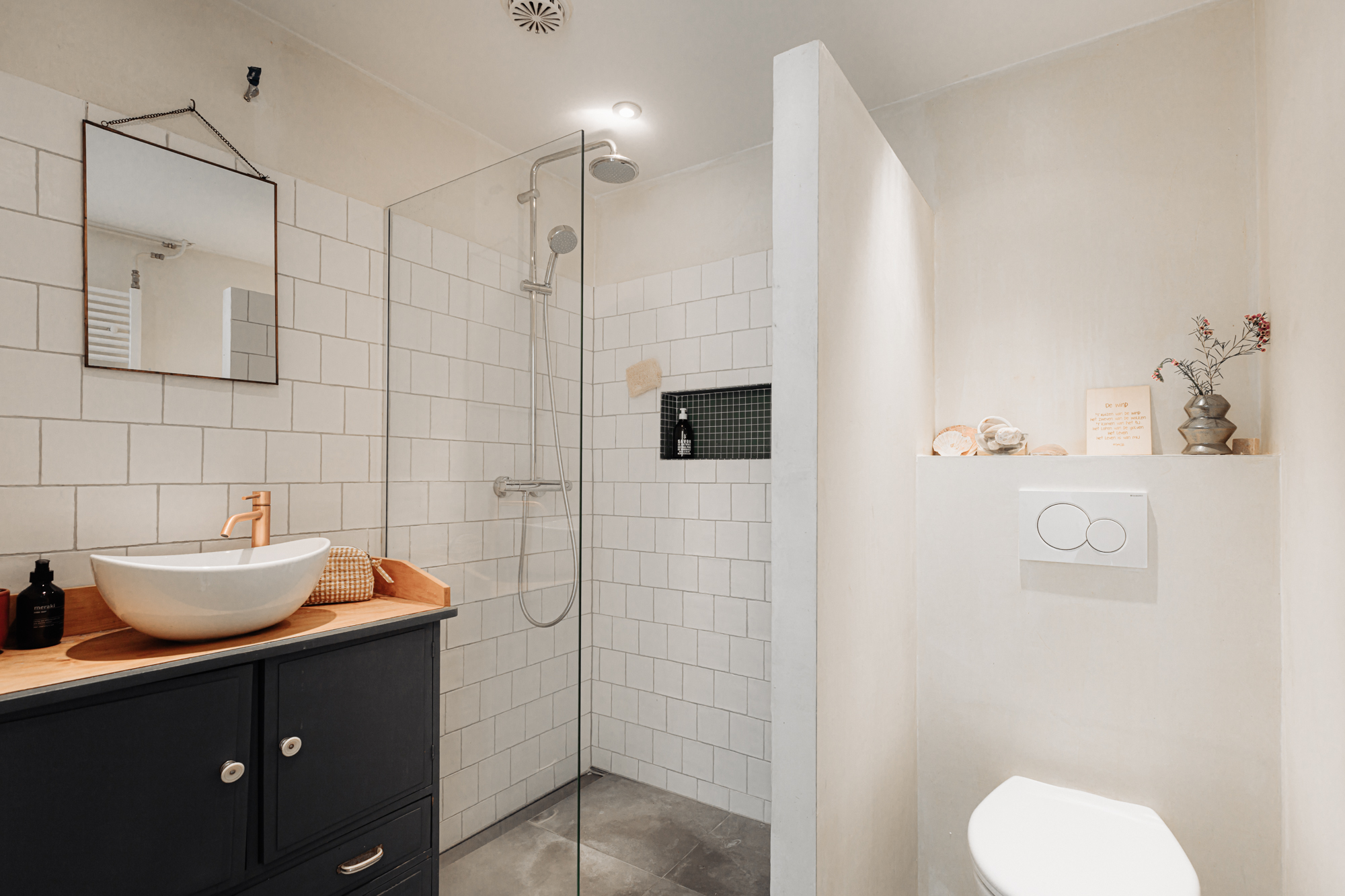 Het hele land ben ik doorgereden voor de mooiste materialen. De vloer komt van het dak van een oude schuur in Frankrijk, de kleuren zijn zorgvuldig samengesteld met de experts van Verfspeciaalzaak Engels, de keuken bestaat uit de mooiste tegels en mijn extra diepe balkon is een verlengstuk van het huis door de openslaande deuren. Het woonplezier is enorm. De extra brede doorgang van woonkamer naar gang geven het huis veel gevoel van ruimte en als je dan de slaapkamer open laat staan schijnt de zon eigenlijk de hele dag naar binnen. In de ochtend in de slaapkamer, en gedurende de dag draait hij steeds meer naar het balkon waardoor je na een drukke dag heerlijk van de laatste uren van de dag kan genieten. De strak ingemeten en op maat gemaakte houten kledingkast, het riante washok en de extra bergruimte beneden zorgen ervoor dat je eigenlijk al je extra spullen wel kwijt kan en je altijd een fris en opgeruimd huis kan hebben.