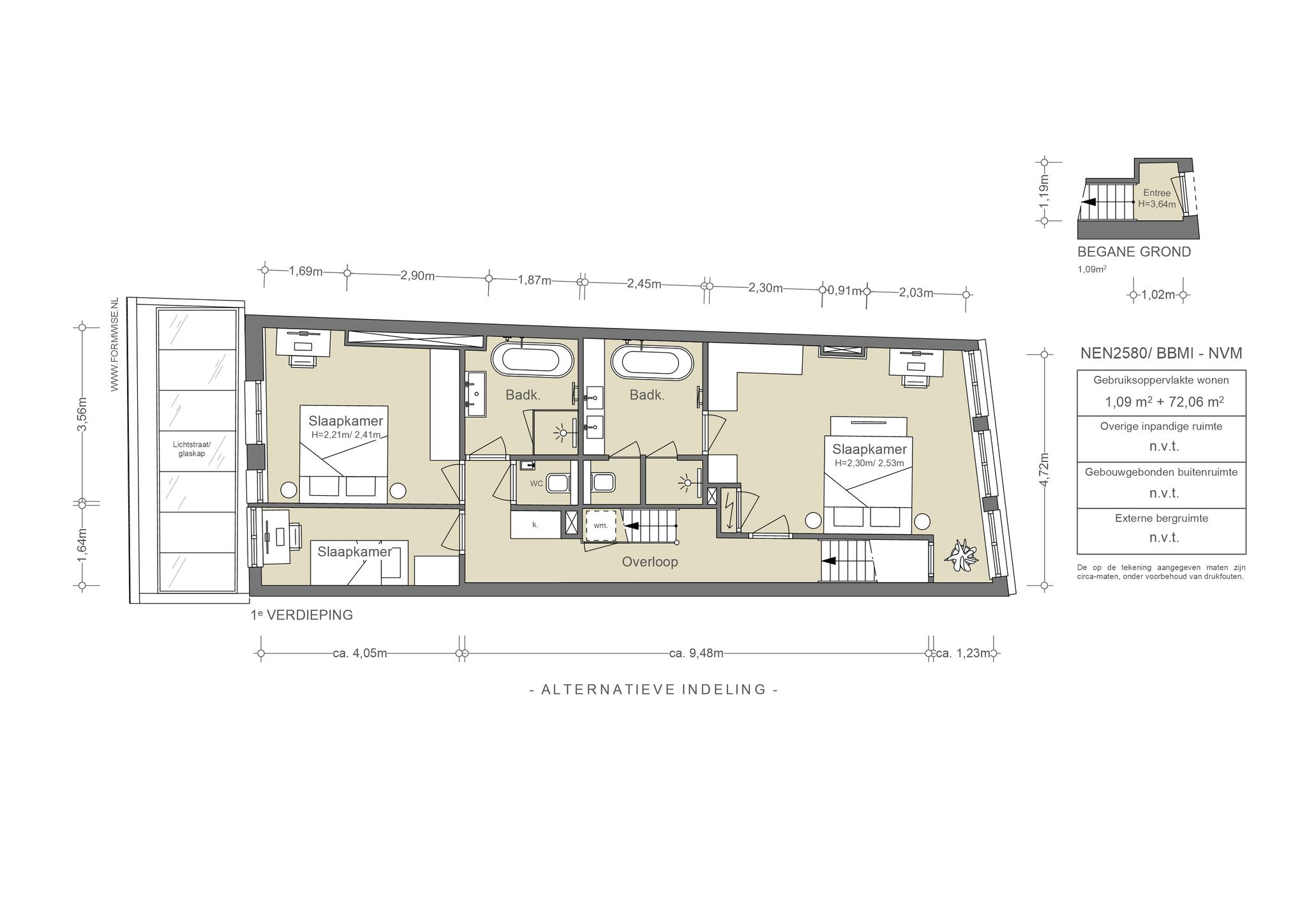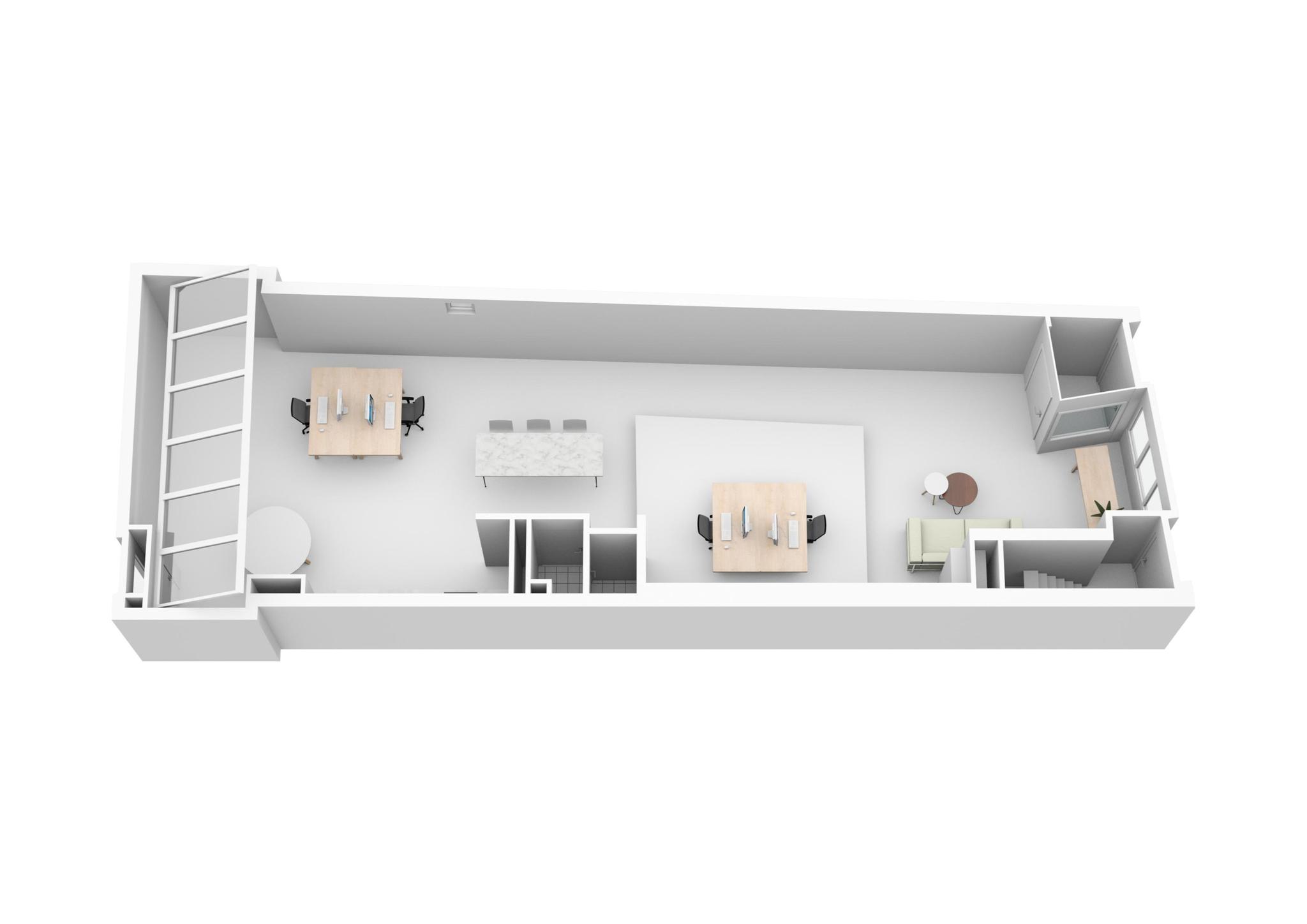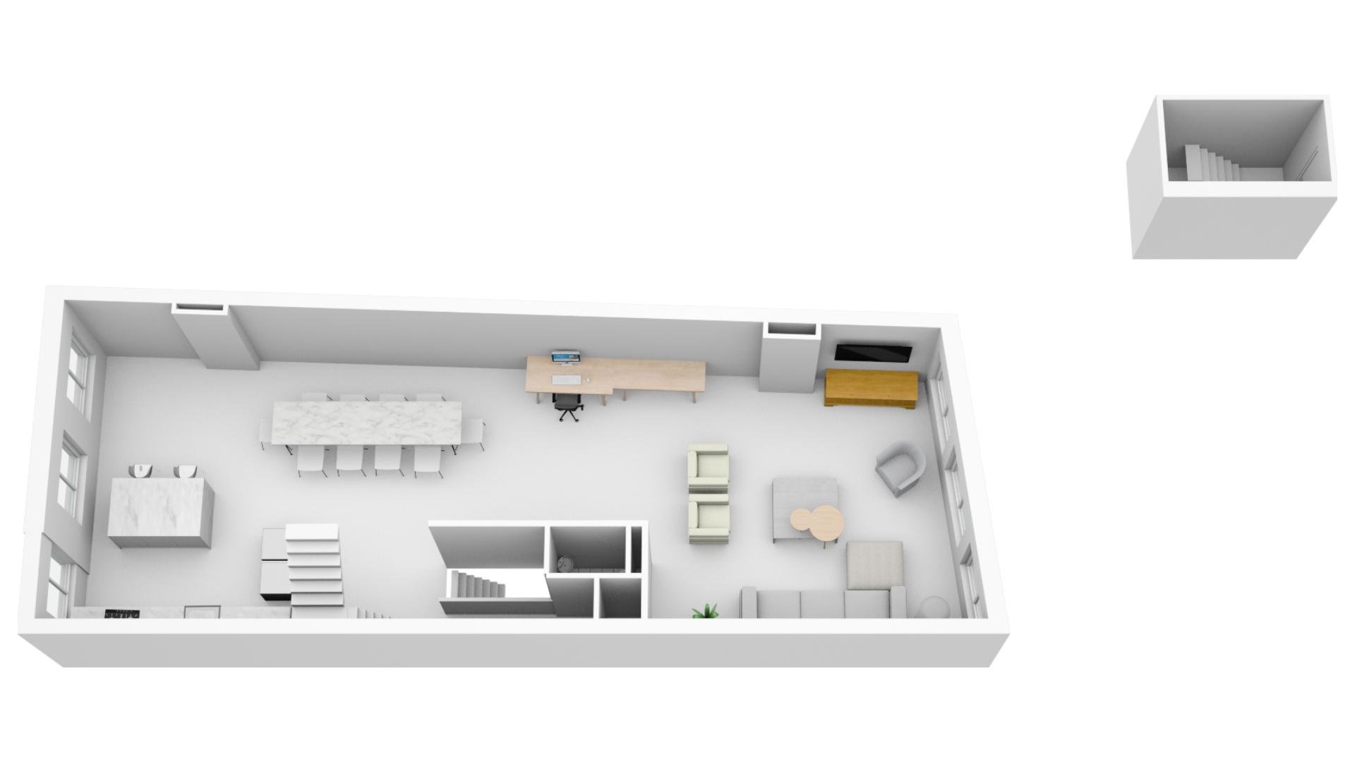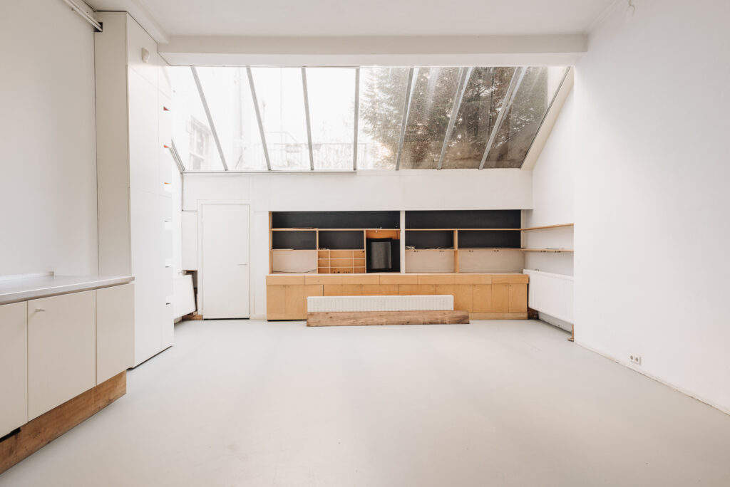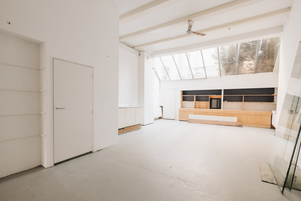 Het geheel is opgedeeld in drie afzonderlijke eenheden met op de begane grond een creatieve hoge ruimte met aparte voordeur, die recent is verbouwd en direct verhuurbaar is, en een bovengelegen woning met eigen opgang en dakterras, die qua indeling ook als 2 separate units kan worden gebruikt.