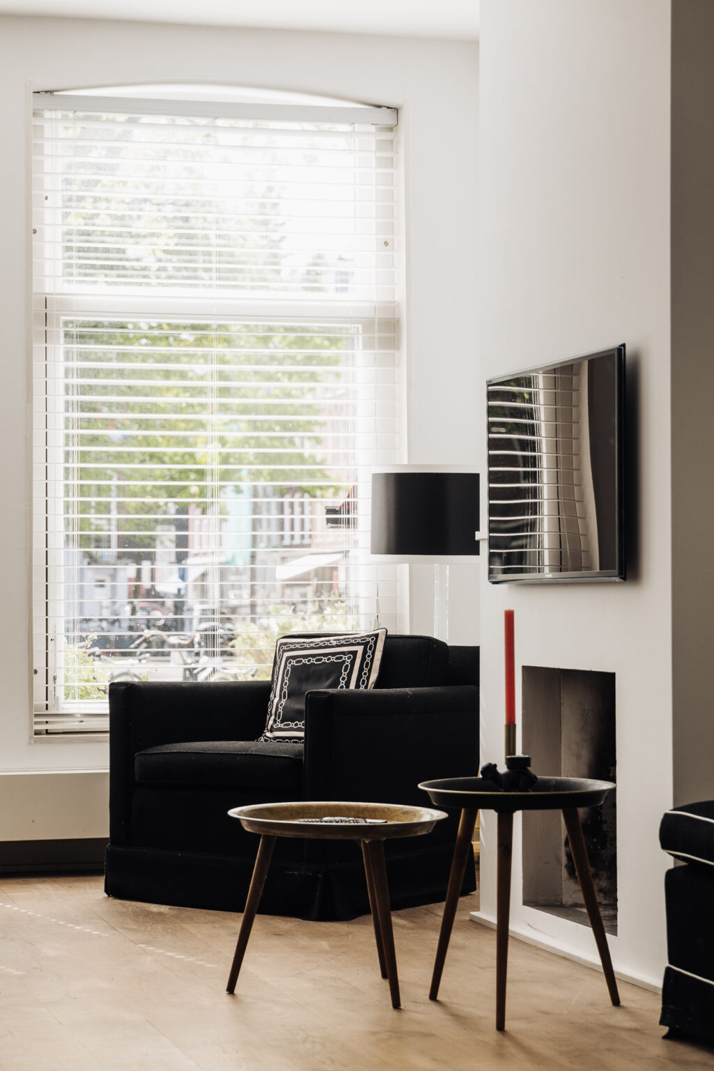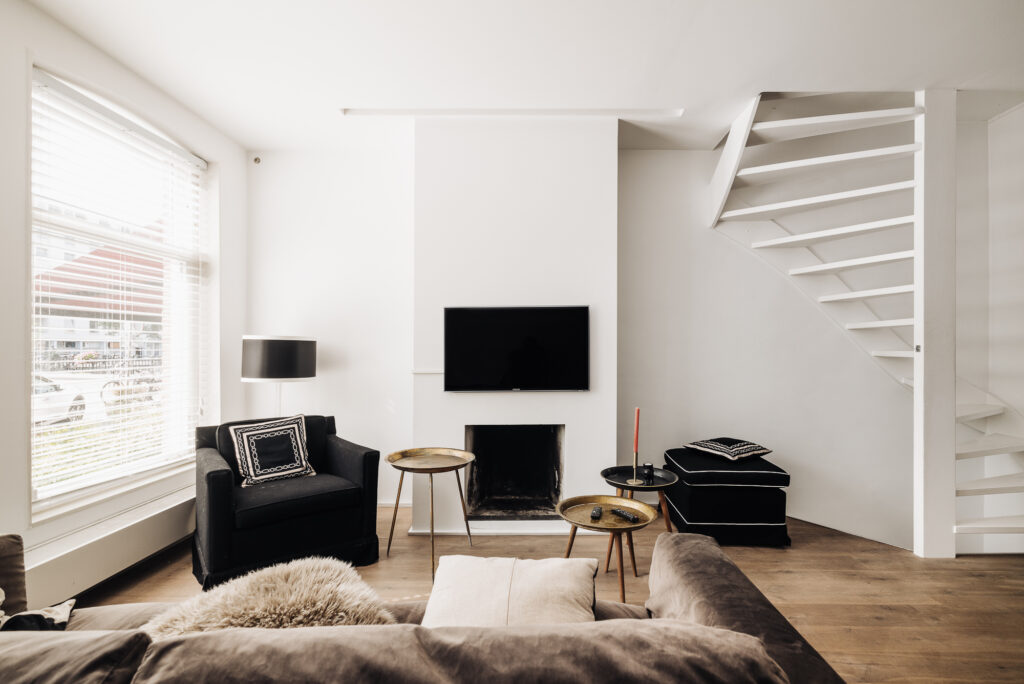De woning heeft een eigen entree vanaf de tweede verdieping. Er is een gezellige woonkamer met open keuken en drie ramen met zicht naar de grachten.