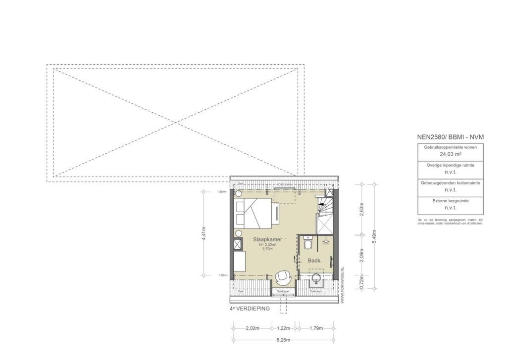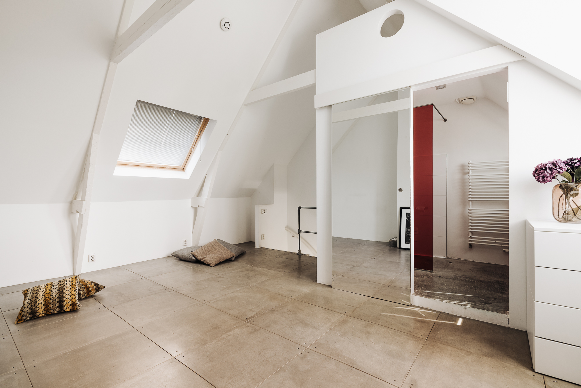 De sfeervolle kapverdieping heeft een mooie hoogte en houten spanten in het zicht. De slaapruimte is voorzien van een badkamer met douche, wastafel en toilet.