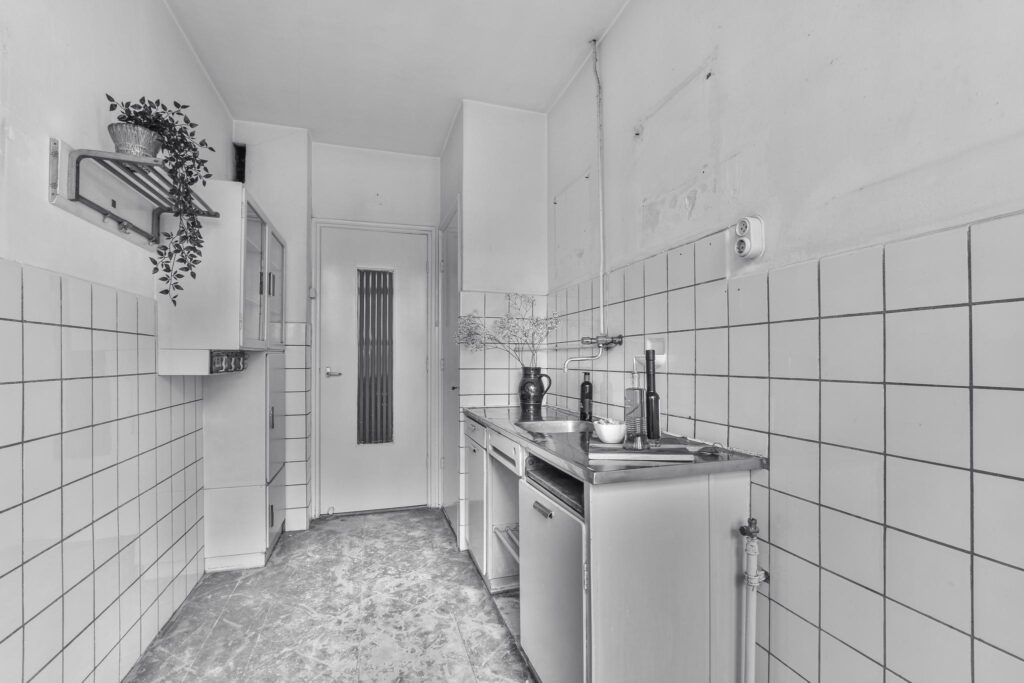 Niet alleen aan de buitenzijde is de simplistische bouwstijl te herkennen. Ook binnen is dit terug te vinden in de manier van vormgeving van onder meer het trappenhuis, bergingen en de indeling van het appartement. Alles is recht voor de optimale benutting van de ruimte.