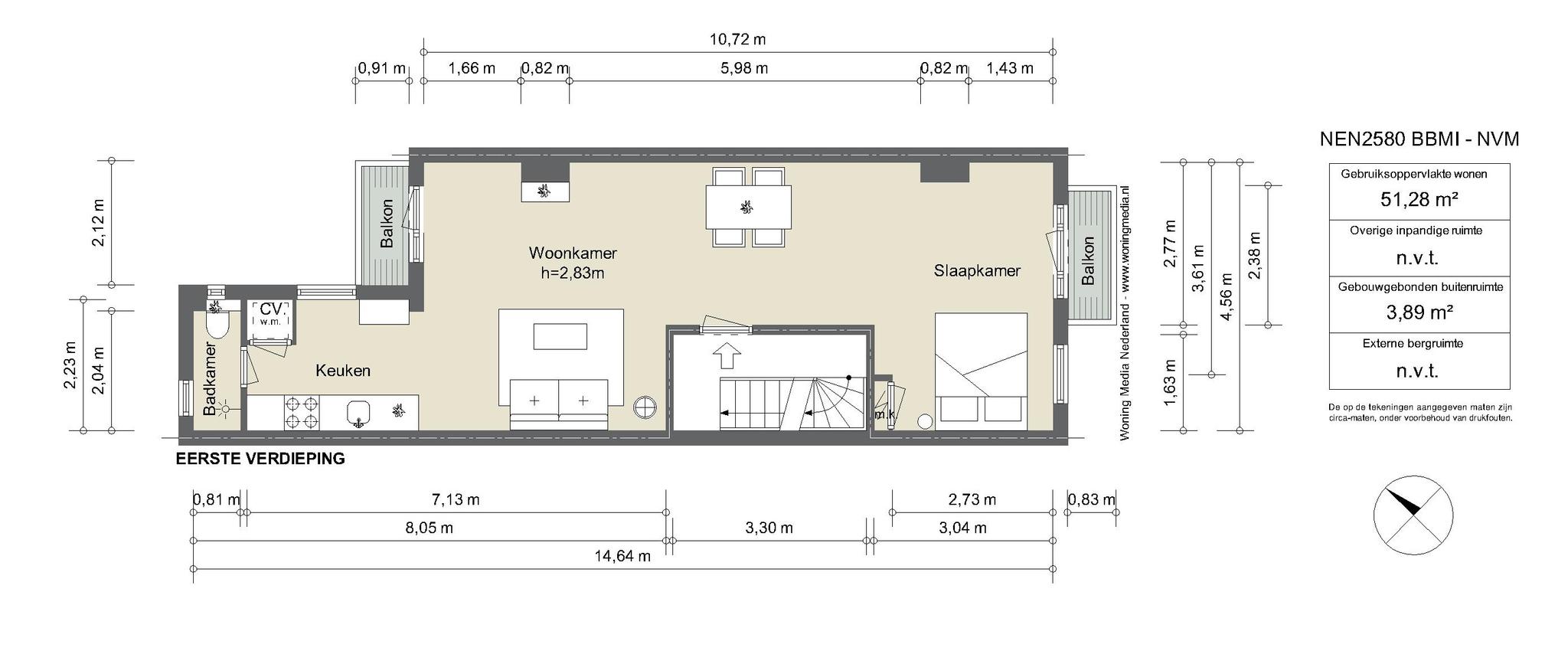 - Gebruiksoppervlakte wonen ca. 51 m²