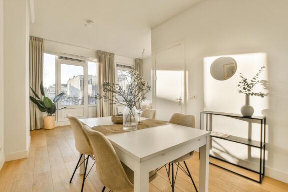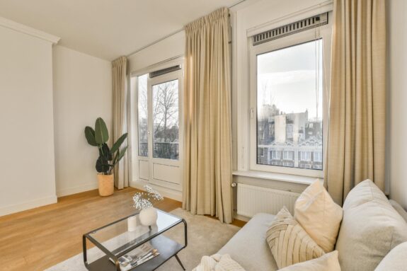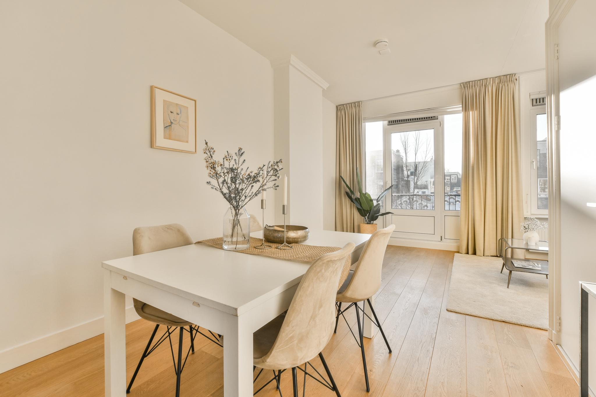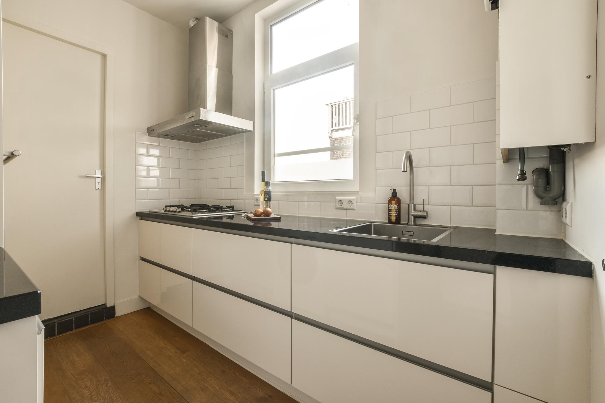 Een licht en gezellig tweekamerappartement met een lichte woonkamer en een balkon aan de voor- en achterzijde.