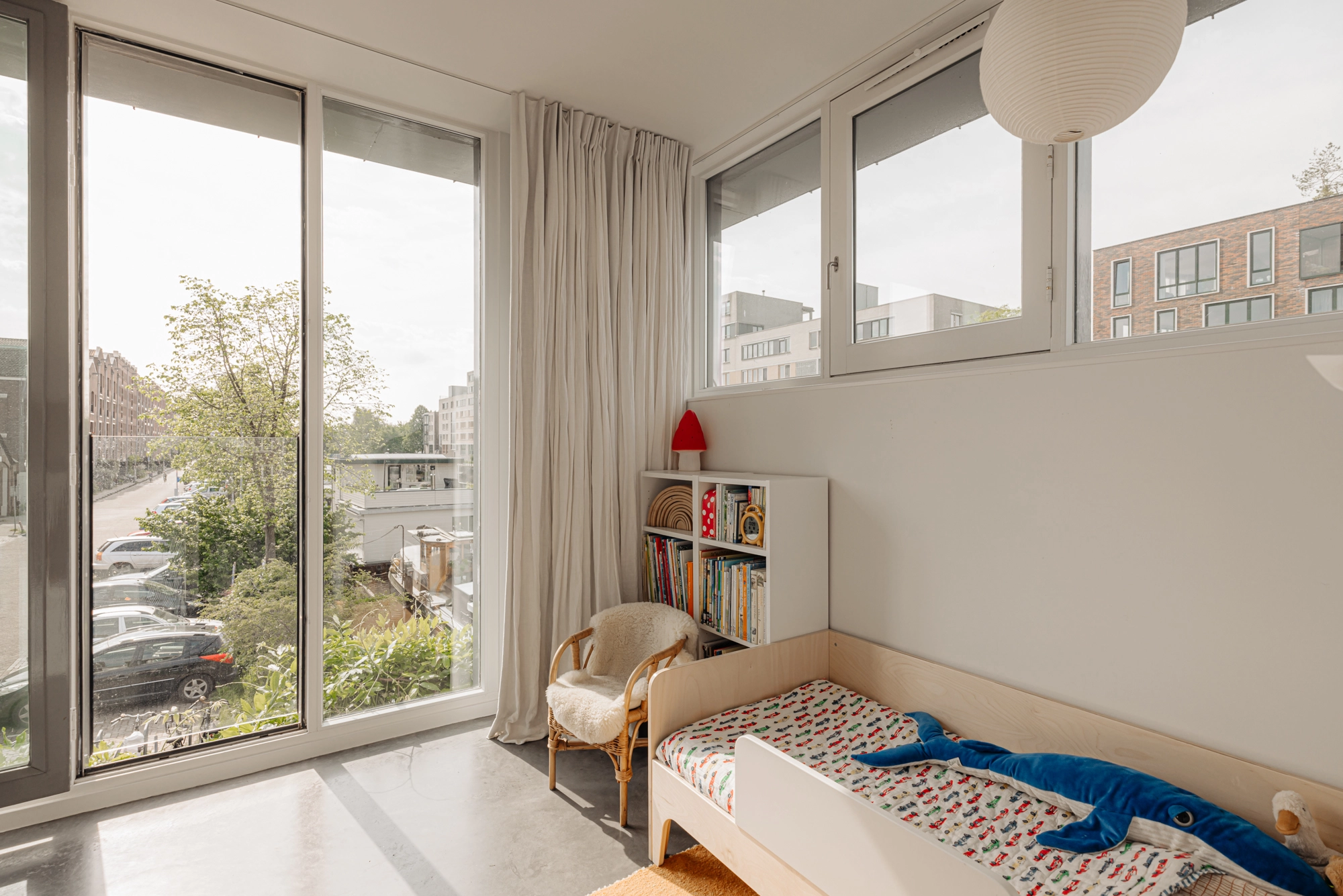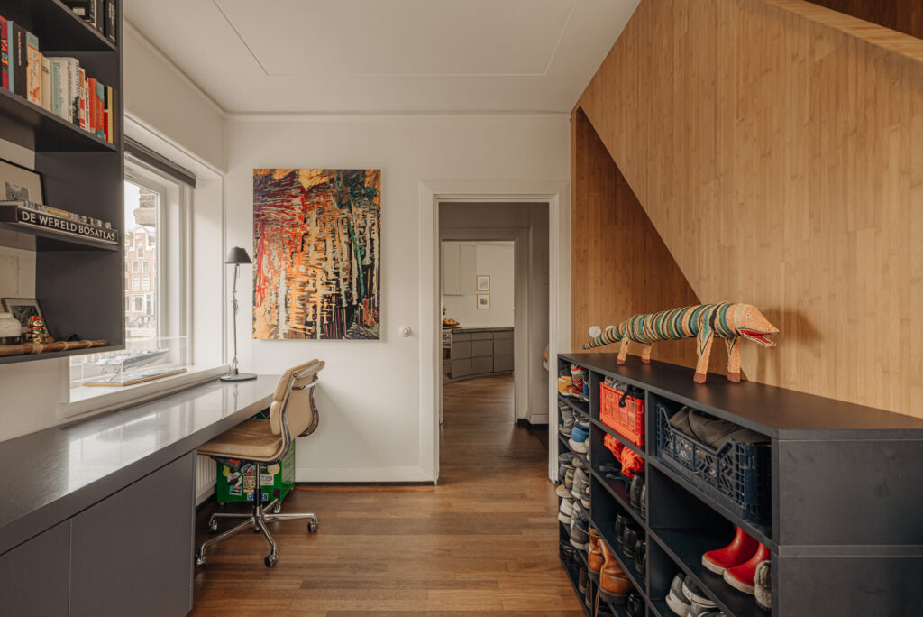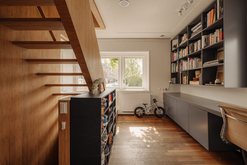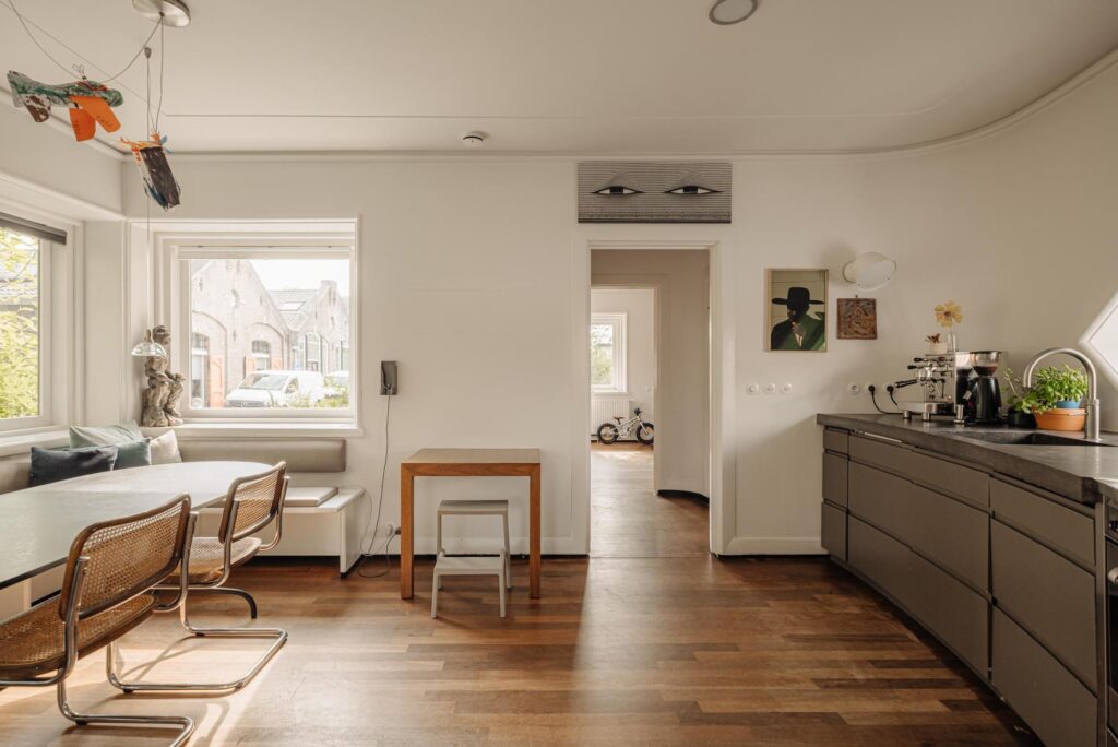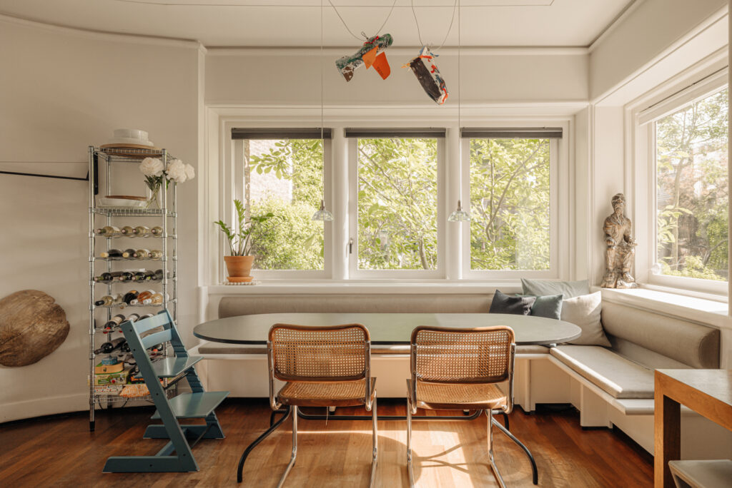Wat dit huis ook zo eigen maakt, is alles wat we hier beleefd hebben. De intocht van Sinterklaas, waarbij we met vrienden en familie voor het raam stonden te zwaaien als zijn stoomboot voorbij voer. De feestdagen en lange zomeravonden, met diners en borrels op het plein—onze eigen oase in de stad. De eerste rondjes die ons zoontje hier leerde fietsen. De ochtenden op het bankje bij de voordeur in de zon. Samen op de steiger, kijkend naar de bootjes die langskomen en vrienden die spontaan aanmeren voor een glas wijn.