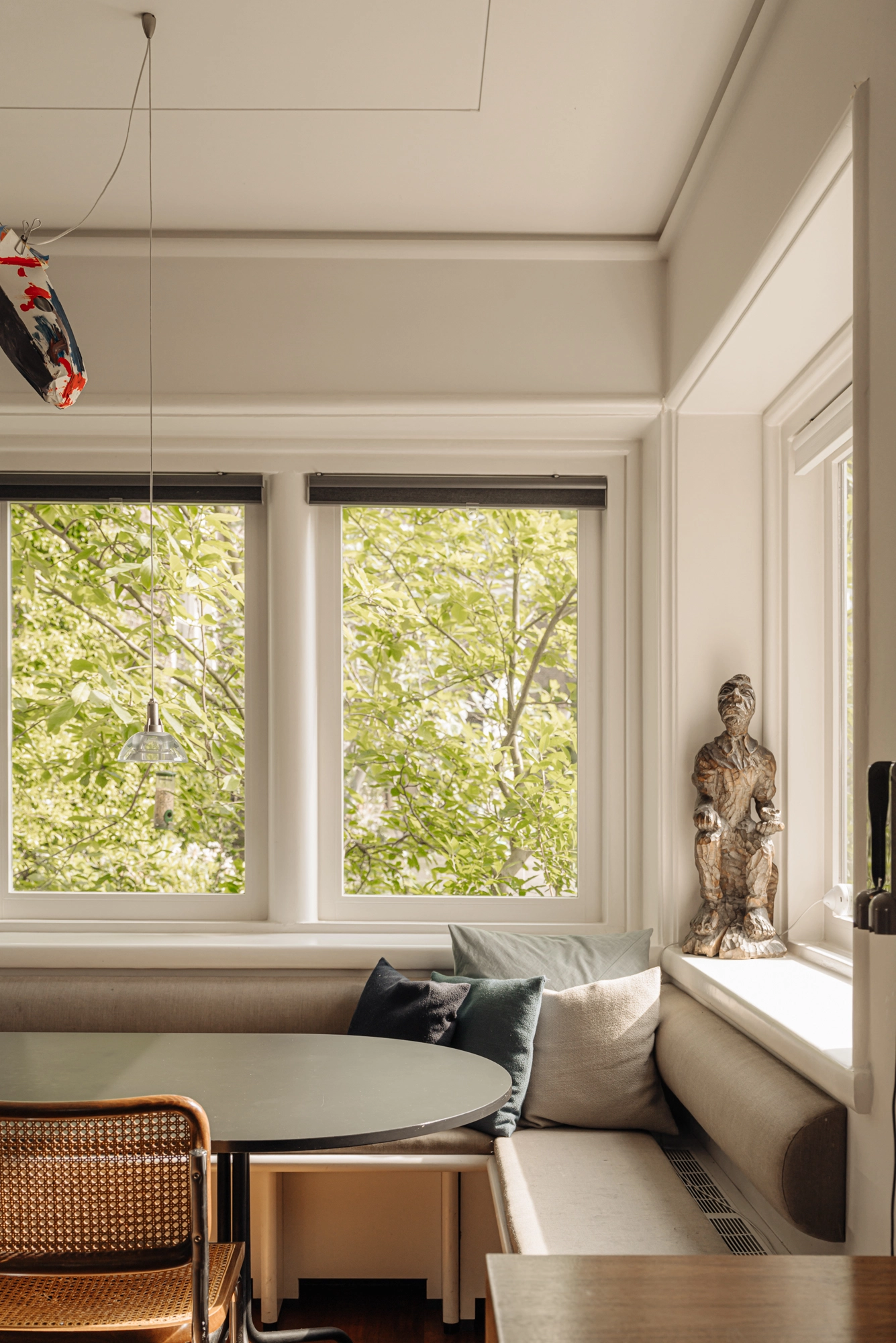 “What makes this house so special is, of course, everything we’ve lived here. The holidays and long summer evenings, with dinners and drinks on the square—our own oasis in the city. Mornings on the bench by the front door, catching the first sun. Sitting together on the dock, watching the boats drift by and friends spontaneously mooring for a glass of wine. The charm of the house lives in every detail: the curved lines of the façade, the deep windowsills, the skirting boards, the doorframes, our characterful front door. In this place, we felt freedom, light and space. A home full of life. A home that feels like a work of art—to live in, to celebrate, and to cherish."