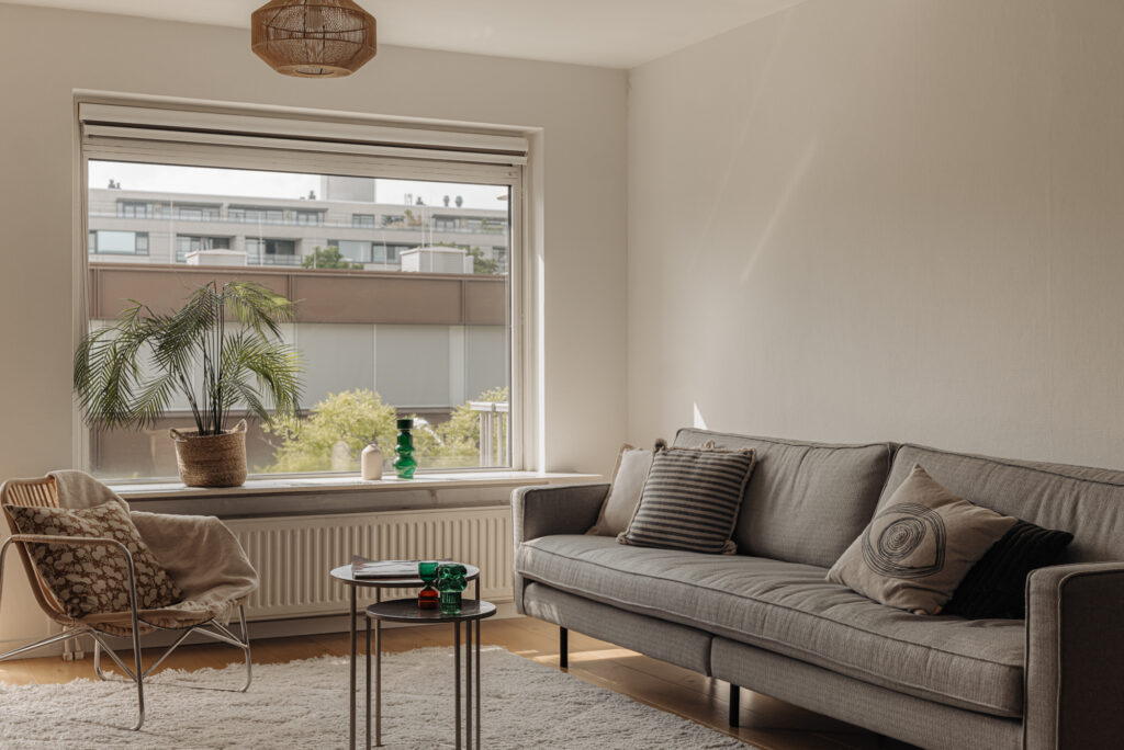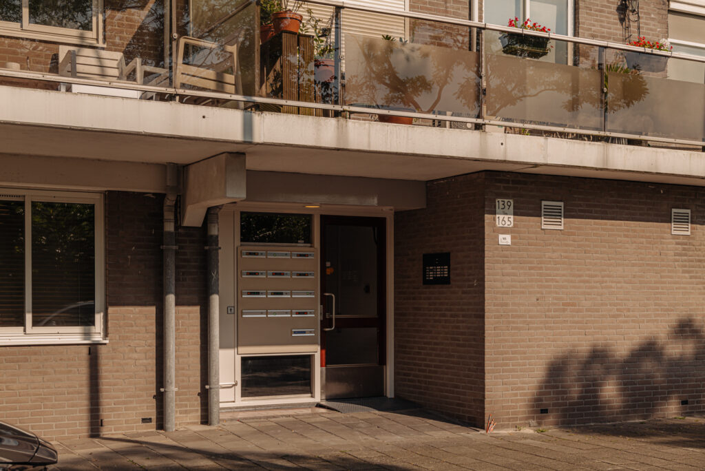 Dit appartement is toegankelijk via zowel de trap als de lift vanuit de centrale hal. De woonkamer, die veel natuurlijk licht binnenlaat, biedt toegang tot een balkon op het westen. De keuken aan de achterzijde van het appartement heeft een vrij uitzicht over een plantsoen en is uitgerust met een granieten werkblad en inbouwapparatuur. Daarnaast is er een aparte berging voor de wasmachine en extra opslagruimte. De hoofdslaapkamer, ook gelegen aan de rustige achterzijde, beschikt over een grote inbouwkast. De tweede slaapkamer bevindt zich aan de voorzijde en grenst aan de woonkamer en het balkon.