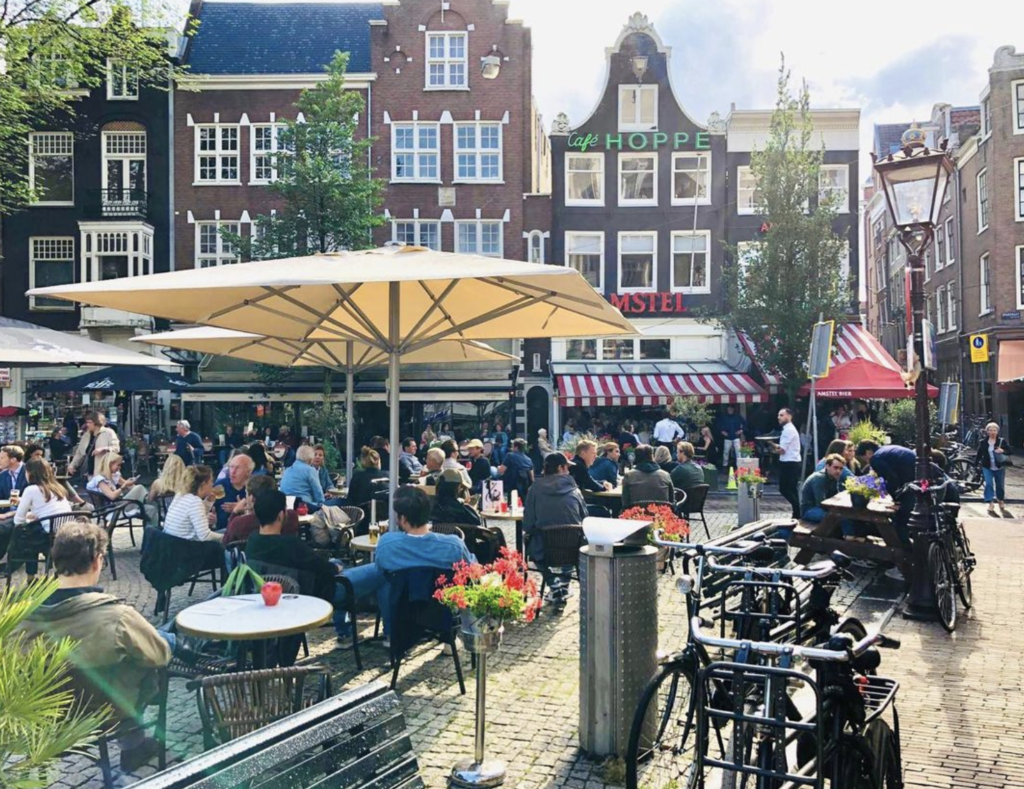 Dit café is een klassieker: sinds 1670 is Café Hoppe al gevestigd aan het centrale plein genaamd t’ Spui. Café Hoppe heeft dan ook een rijkelijke geschiedenis: hier werd de basis gelegd voor een van de grootste politieke partijen van Nederland, voormalig Koningin Beatrix vereerde de bruine Amsterdamse kroeg met een bezoek maar ook Freddy Heineken, grondlegger van het meest bekende Nederlandse bier liep de deur plat in dit centraal gelegen café. En nog steeds is Hoppe een van de meest bruisende cafés in het centrum van Amsterdam. Strijk hier neer voor een (Heineken) biertje, geniet van de zon en kijk om je heen.