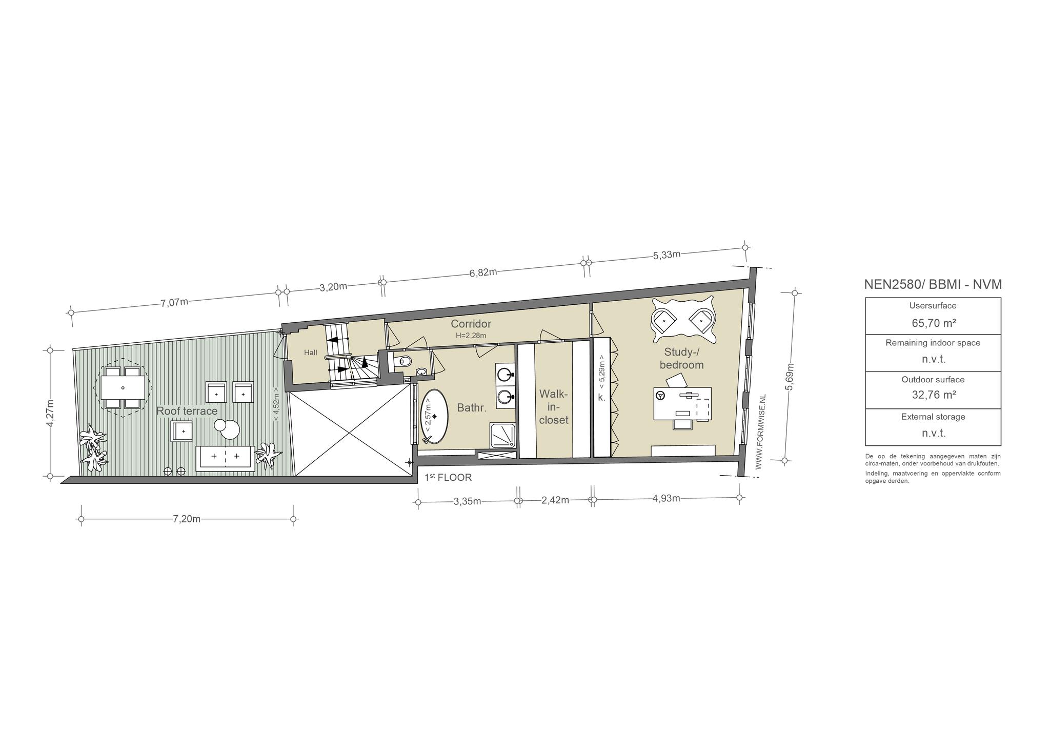 On this floor there is a large room that could be used as a master bedroom or study. There is also a luxurious bathroom with a walk-in shower, bath and double sink. There is a walk-in closet and toilet in the hall. At the rear is the sunny terrace of approx. 33 m2 that overlooks the Krijtberg Church.