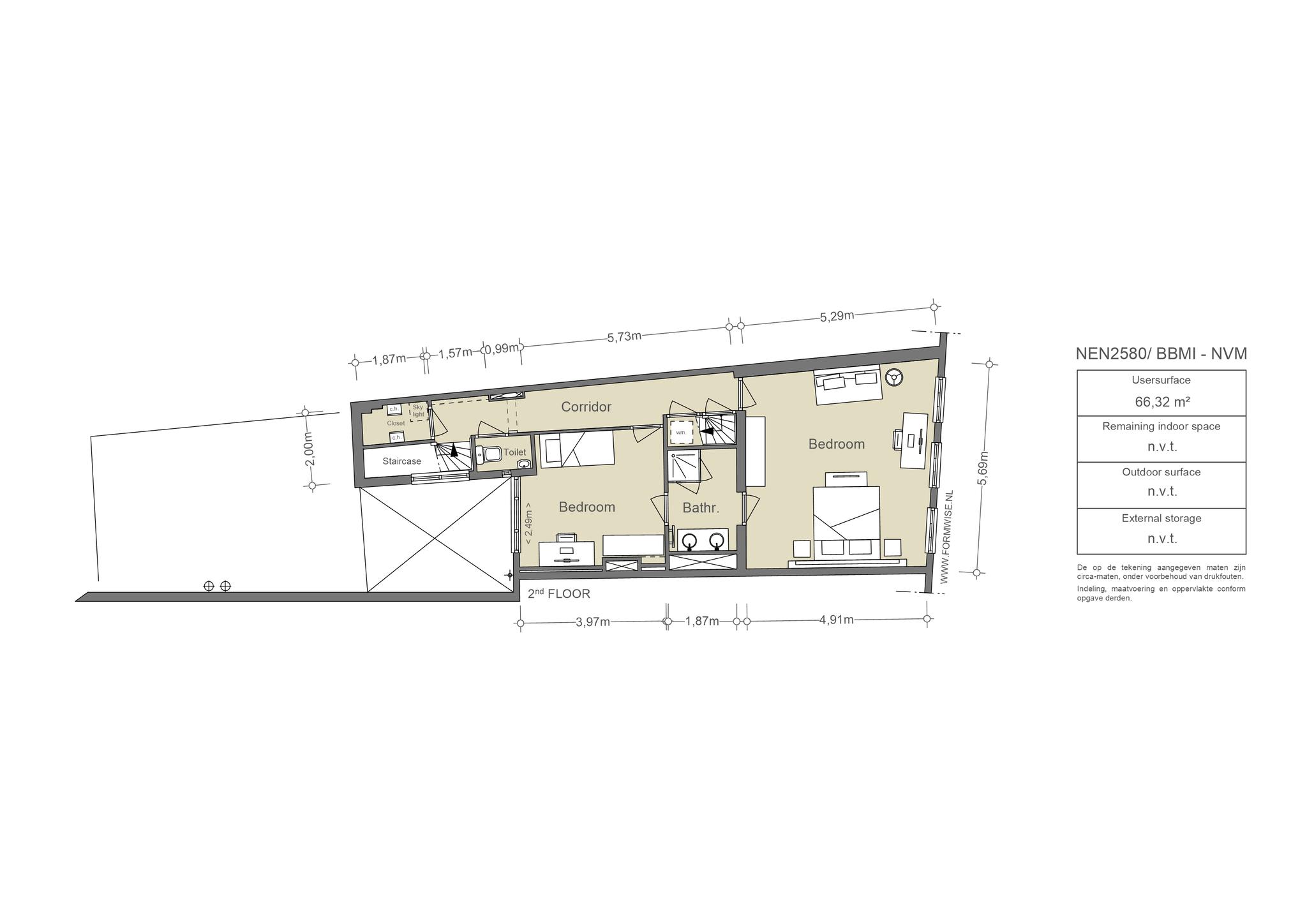 This sleeping floor has two bedrooms, a large one at the front of the house and a second one at the rear. In the middle is a modern bathroom with double sink and shower, in the hall is a separate toilet. Attractive and light materials have been used that ensure a coherent whole.