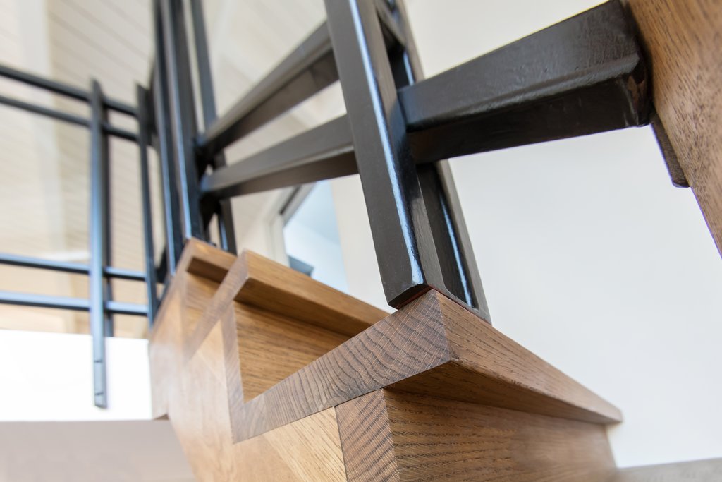 Via de prachtige trap met een trapleuning van staal en glas is de vide te bereiken waar een studeerkamer is gecreëerd met een modern design bureau en antieke boekenkasten.