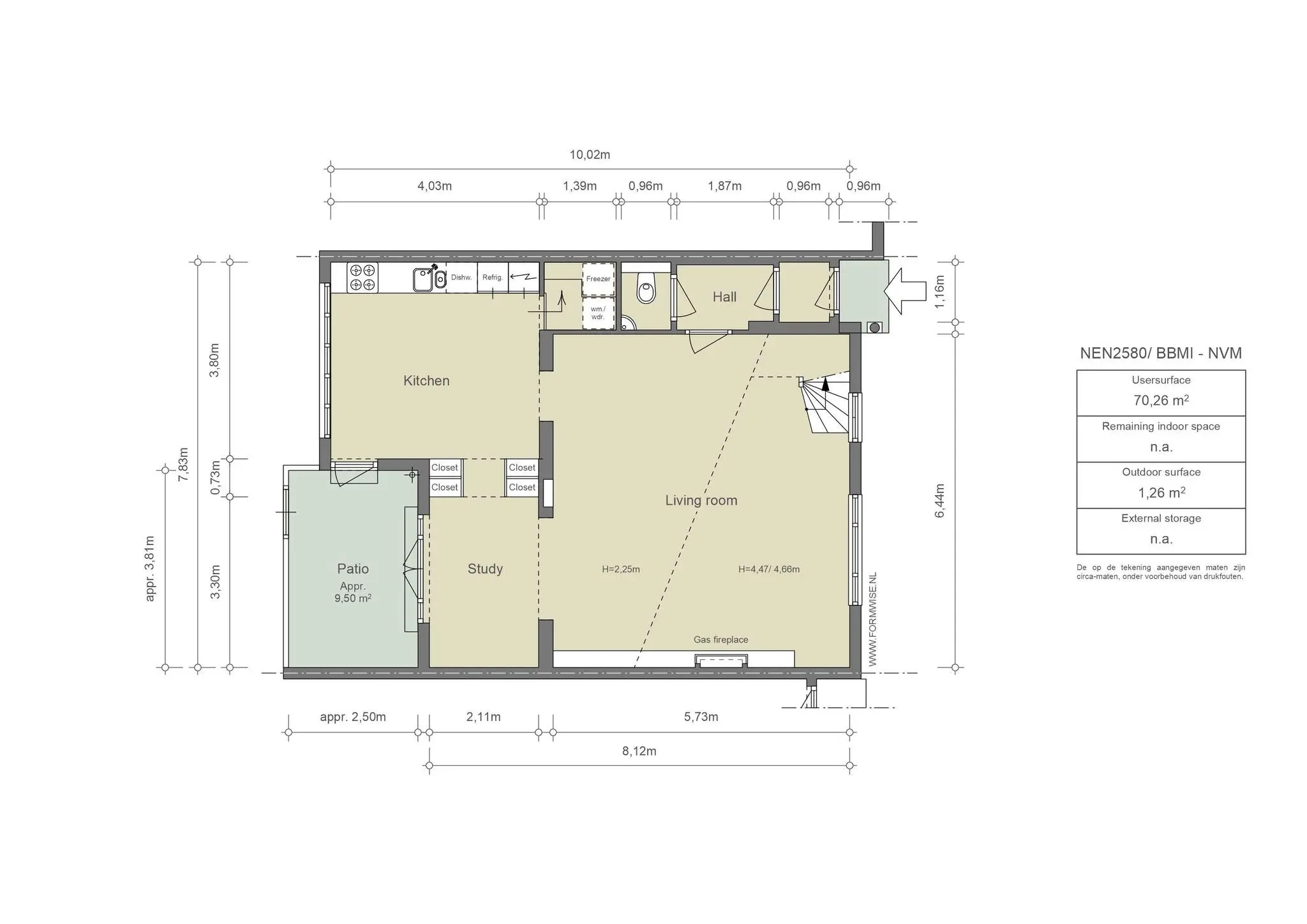 Binnenkomst middels eigen entree. De hal geeft toegang tot de woonkamer, in deze kamer spreken de grote raampartijen die voor veel lichtinval zorgen gelijk tot de verbeelding. De kamer krijgt door de grote ramen en vide een ruimtelijk gevoel. Het is een fijne plek om thuis te komen en gezellig bij de gashaard te zitten.