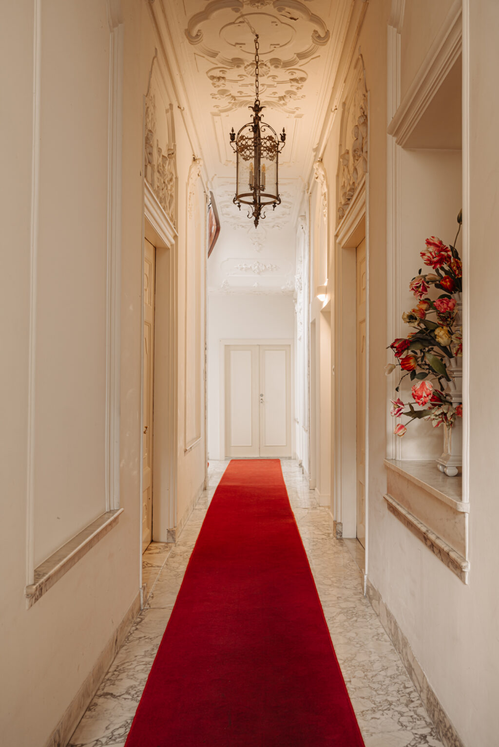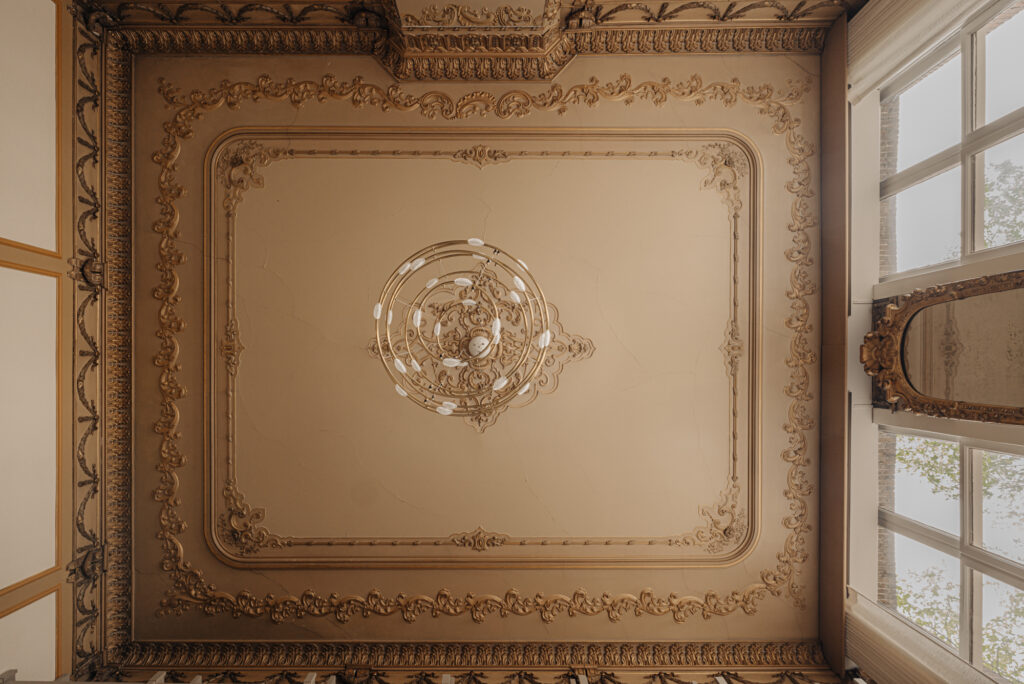 De hal van het pand is een ware lust voor het oog, met indrukwekkende wand- en plafondsculpturen van stucwerk, die onder andere de werelddelen en klassieke allegorieën afbeelden. De prachtige houten leuningen van de trap naar de verdiepingen, vervaardigd door vader en zoon Van Logteren in de eerste helft van de 18e eeuw, zijn eveneens meesterwerken op zich.
