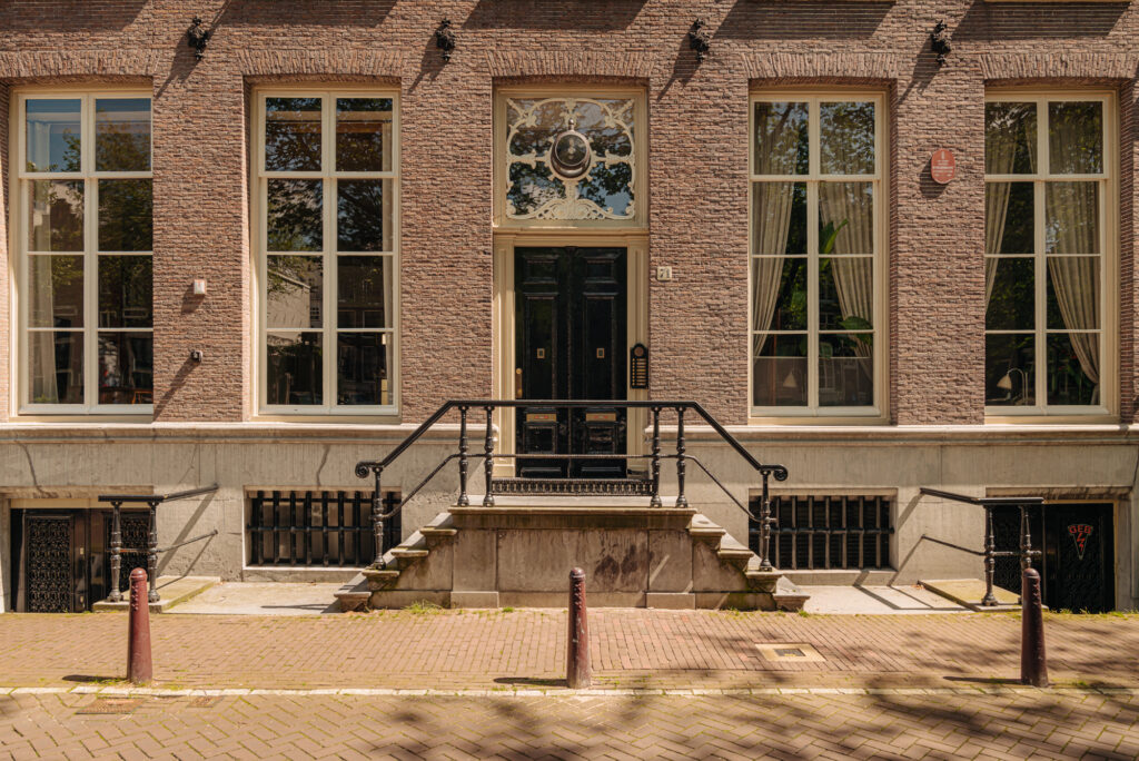 Het pand heeft nu een gevel van vijf ramen breed, met een imposante voordeur in het midden en een dubbele stoep. Het omvat vier woonverdiepingen, een souterrain en een attiek aan de bovenzijde. Op de voorgevel herinnert een schildje aan een van de beroemde bewoners, Heinrich Schliemann, de ontdekker van Troje. Ook heeft het pand gediend als gemeenschap voor de broeders van Saint Louis, waarvan de voorkamer nog te zien is in het grachtenmuseum.