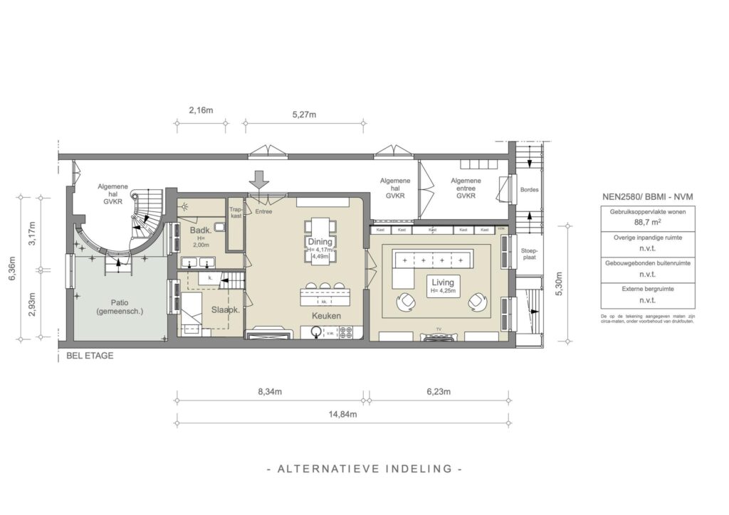De entresol heeft een unieke slaapruimte gecreëerd, waardoor er tevens ruimte is voor een werkplek of bureauhoek. Deze slimme indeling benut de hoogte van de ruimte optimaal en draagt bij aan het woongenot. Dankzij de entresol wordt er een extra dimensie toegevoegd aan de ruimte, wat zorgt voor een bijzondere woonervaring.