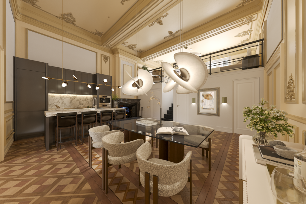•    Gelegen in twee stijlkamers met een plafondhoogte van bijna 4,5 meter