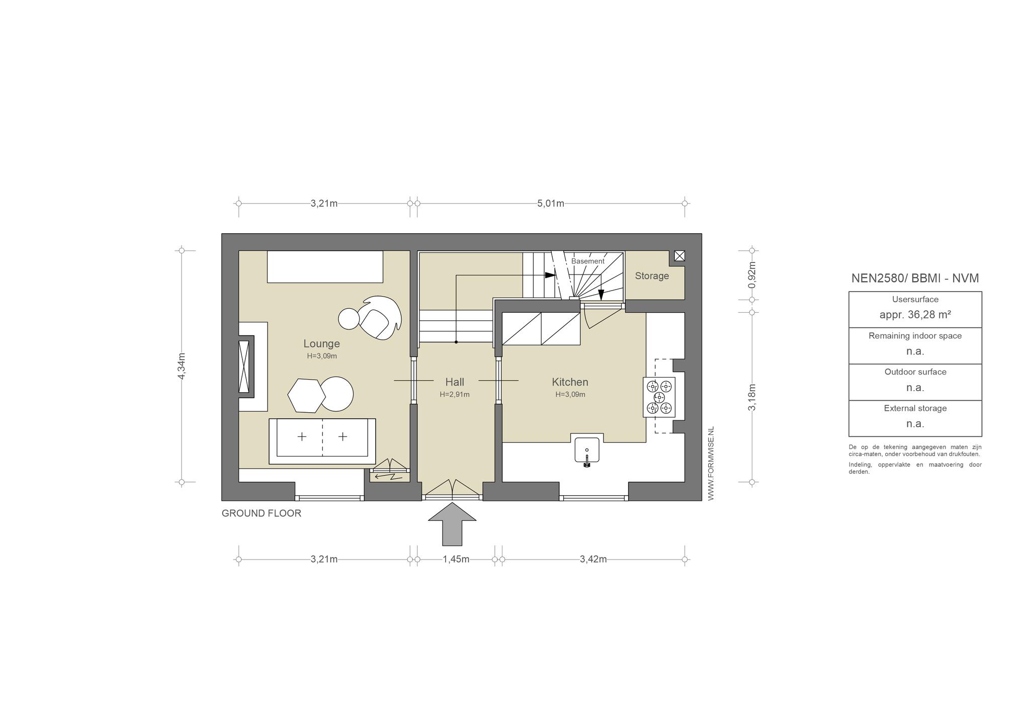 Bij binnenkomst via de grote houten deur vallen direct de originele ornamenten, schouw, vloer, balken en het behang op. De smaakvolle keuken met inbouwapparatuur biedt uitzicht op de gracht. Naast de keuken bevindt zich een ruime berging/kelder. Een multifunctionele kamer op deze verdieping kan dienen als eetkamer, zitkamer of studeerkamer.